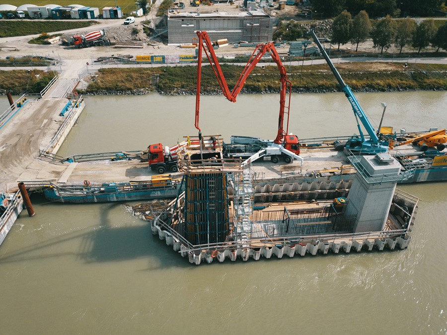 Mit der Produktion von Stahlbauteilen im Werk der MCE wurde begonnen. Es erfolgen Schalungs- und Betonarbeiten bei Widerlager Linz und beim Wasserpfeiler auf Urfahrer Seite.