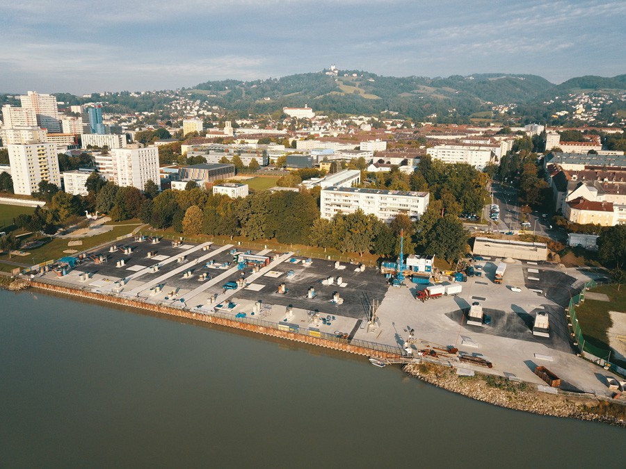 Die Rodungsarbeiten auf Linzer Seite wurden abgeschlossen, ebenso die Betonierungsarbeiten beim Widerlager und beim Vorlandpfeiler Urfahr. Die
