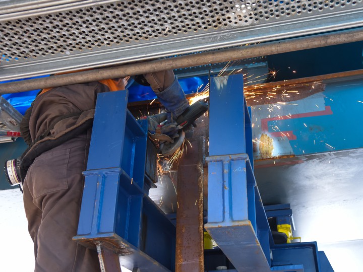 Das Zusammenschweißen der einzelnen Stahlträger ist Präsizionsarbeit.