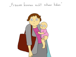 Dieser Cartoon kann unter dem Stichwort "Heben" in Form eines Posters (A3) oder als Postkarte im Linz Shop kostenlos bestellt werden. Die Stofftasche "Frauen können nicht schwer heben" kann ebenfalls im Linz Shop zum Selbstkostenpreis erworben werden.