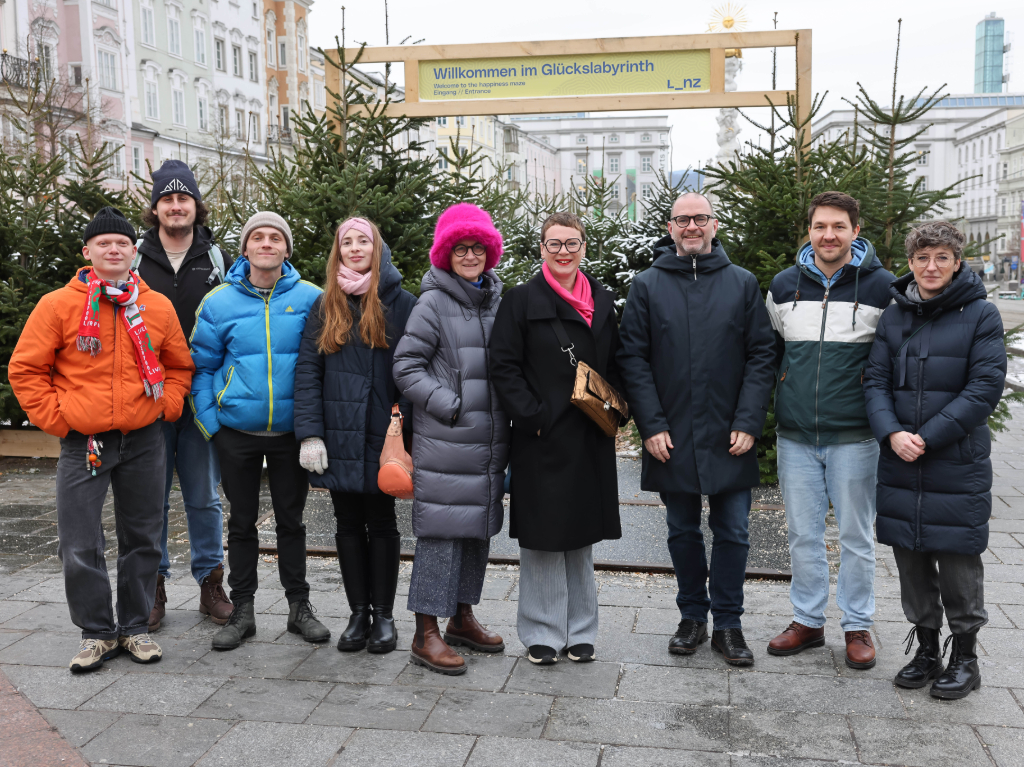Linz macht glücklich! Heute, Montag, eröffneten Vertreter*innen der Stadt Linz das Glückslabyrinth am Hauptplatz. Die Attraktion ist bis inklusive 25. Februar für Besucher*innen aller Altersgruppen rund um die Uhr bei freiem Eintritt geöffnet.