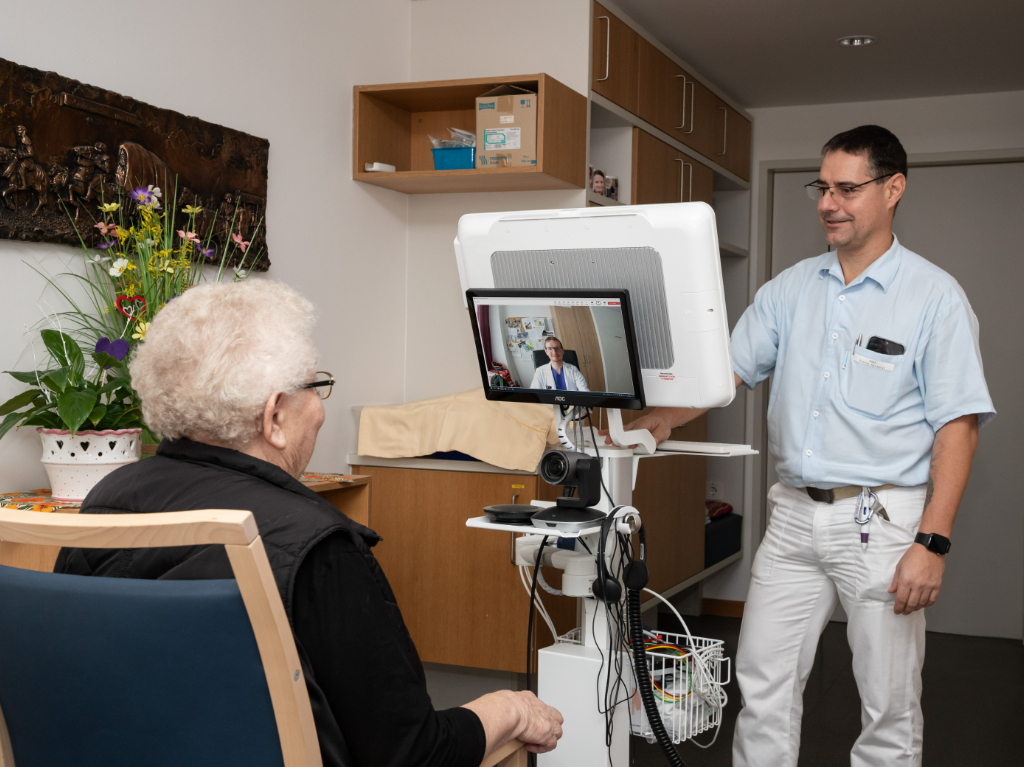 „Vor Weihnachten musste ich wegen einer Infektion ins Krankenhaus transportiert werden,“ erzählt Bewohnerin Frau S., „ich musste mehrere Stunden warten und war erst um 4 Uhr Früh wieder im Zimmer, obwohl das Pflegepersonal und das Krankenhaus ihr Bestes getan haben. Durch die Televisite gestern habe ich mir die Krankenhausfahrt erspart und in 15 Minuten war alles erledigt. Ich bin sehr glücklich darüber.“