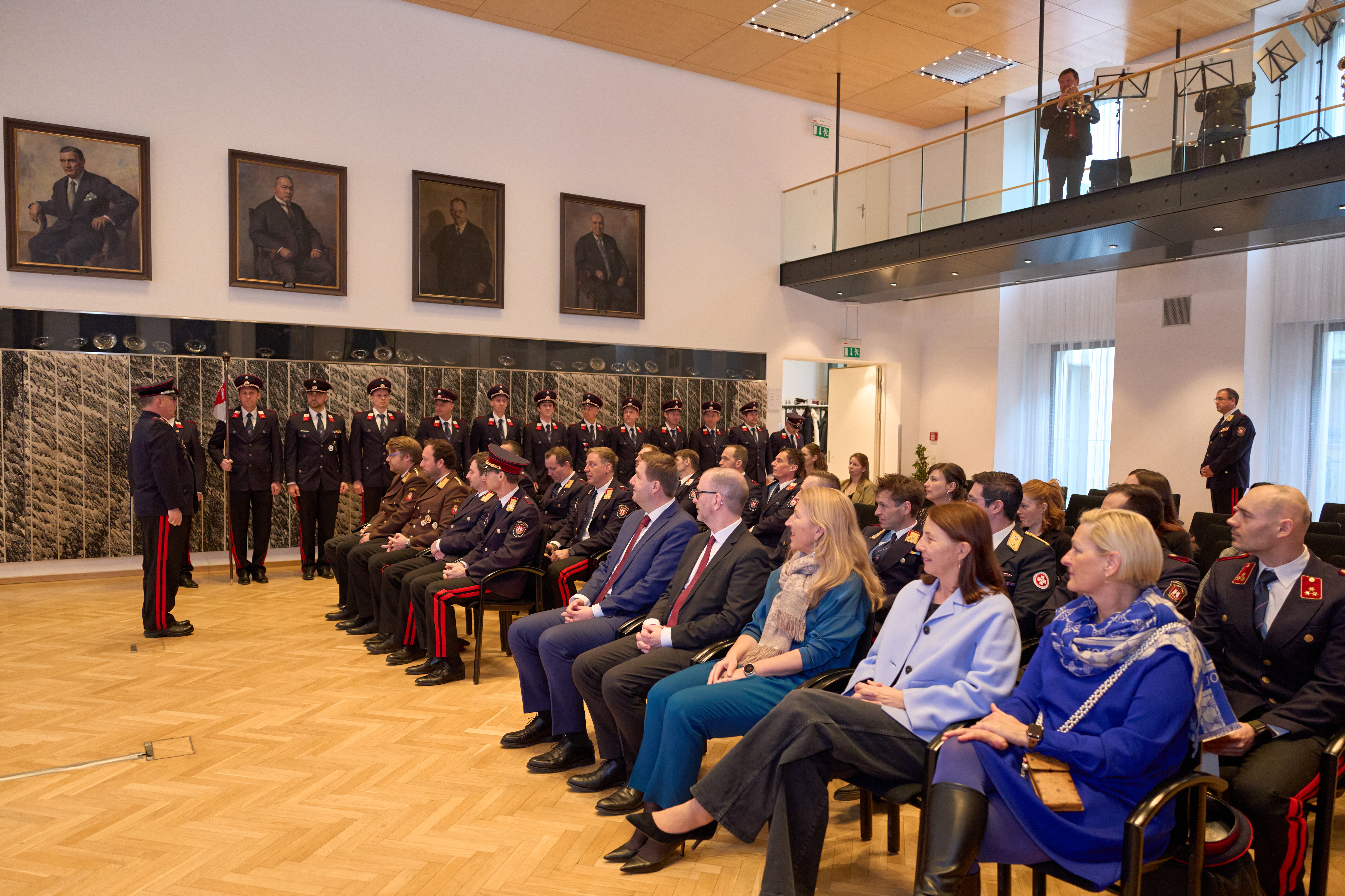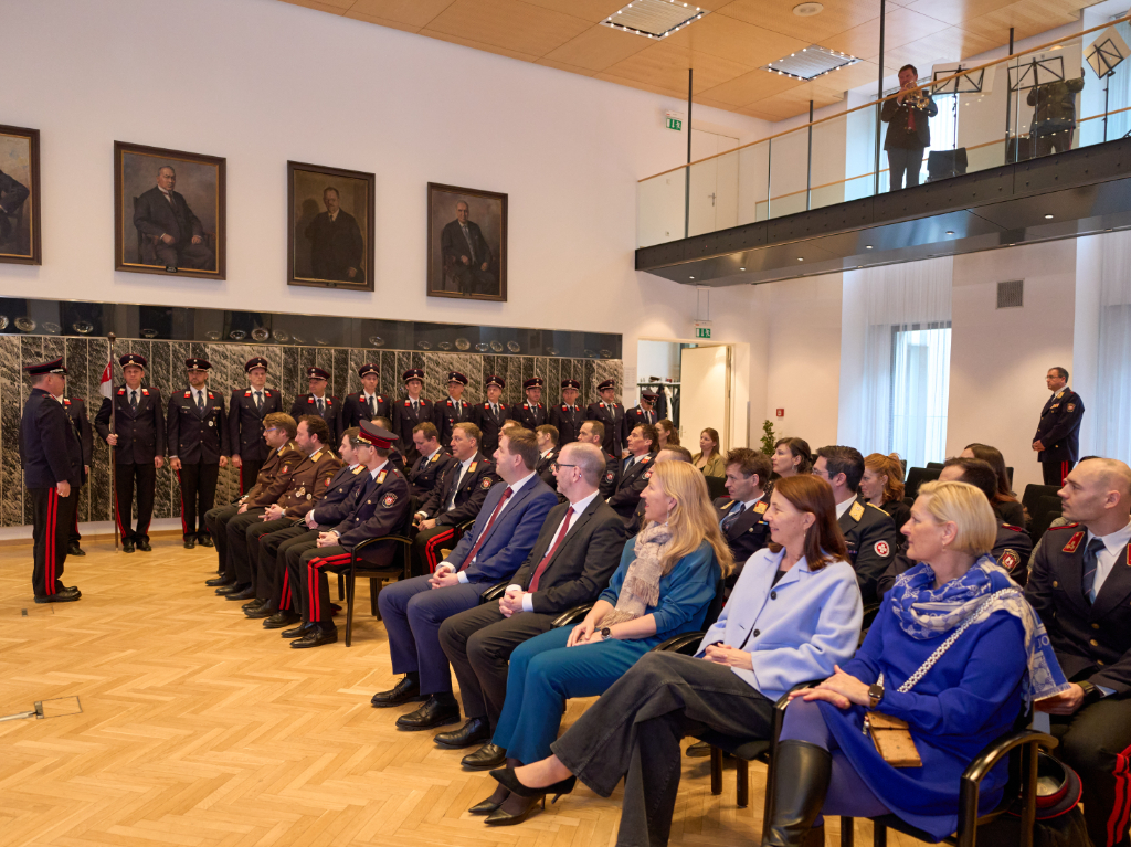 Zahlreiche Vertreter der Stadt Linz, darunter Bürgermeister Dietmar Prammer und Sicherheitsstadtrat Dr. Michael Raml, nahmen an der feierlichen Abschlussveranstaltung im Renaissance-Saal im Alten Rathaus teil.