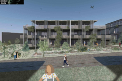 Die Gestaltung der Freiräume im Hinterhof des Projekts wurde überarbeitet. Ein Entwurf für eine künstlerische Gestaltung der Brandmauer, wie vom Beirat angeregt, wird weiter geprüft, möglicherweise im Rahmen eines Wettbewerbs. Dabei soll eine verträgliche Lösung für die Nachbarschaft gefunden werden. Der Wunsch nach schmiedeeisernen Geländern wurde thematisiert, jedoch sieht der Beirat sowohl gestalterische als auch technische Probleme bei den aktuellen Vorschlägen. Verbesserungen am Eingangsbereich wurden umgesetzt, dennoch fordert der Beirat weitere Anpassungen. Das Projekt bleibt in Bearbeitung, eine Planungsvisite soll die letzten Details klären.