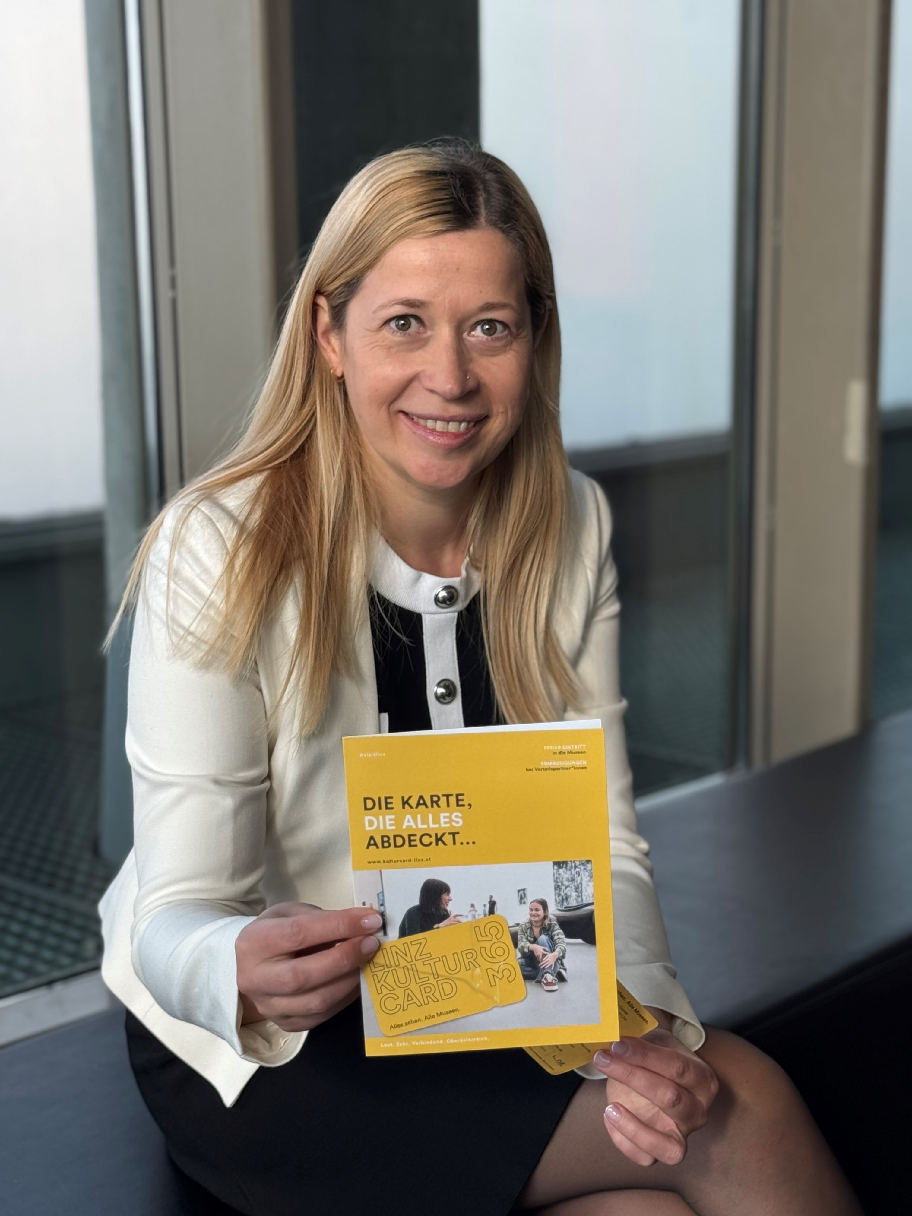 Neben der Linz-Kulturcard-365 gibt es das neue Angebot für Jugendliche: die Linz-Kulturcard-next, die ihnen ein Jahr lang freien Eintritt in elf Museen ermöglicht, weist Kulturstadträtin Doris Lang-Mayerhofer hin.
