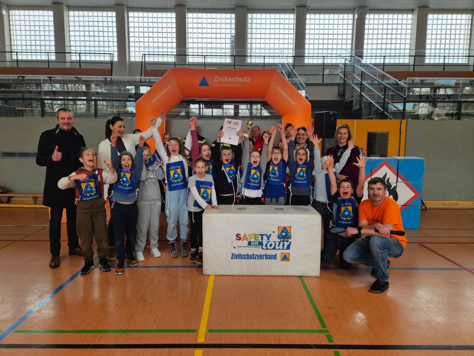 In der VS 50 Ferdinand-Hüttner-Schule fand der Bezirksbewerb für Linz statt. Die 3b der VS 6 Römerberg holte sich mit einem sensationellen Punktevorsprung den Sieg und darf somit am Landesfinale in Wels teilnehmen. Die 3c der VS Hörsching wurde Zweiter. Den dritten Platz sicherte sich die 3a der VS 6 Römerberg. Mit den Kindern freuten sich bei der Siegerehrung auch Vizebürgermeisterin Tina Blöchl und OÖ Zivilschutz-Geschäftsführer Christian Kloibhofer.