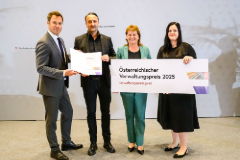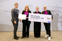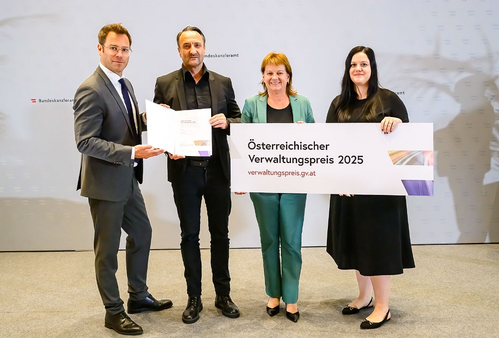 (v.li.:) Andreas Buchta-Kadanka, Leiter der Sektion III im Bundeskanzleramt, überreichte den Verwaltungspreis an SZL-Geschäftsführer Robert Ritter-Kalisch, Vizebürgermeisterin Karin Hörzing und Nora Hackl, Leiterin der Personalabteilung SZL