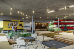 Ein ausrangierter London-Bus dient als Verleihstation für Sportgeräte und Spiele. Bouldergriffe, regelmäßige Workshops und Samstagsturniere in wechselnden Sportarten bringen Dynamik unter die Brücke und machen den Raum aktiv nutzbar.