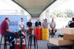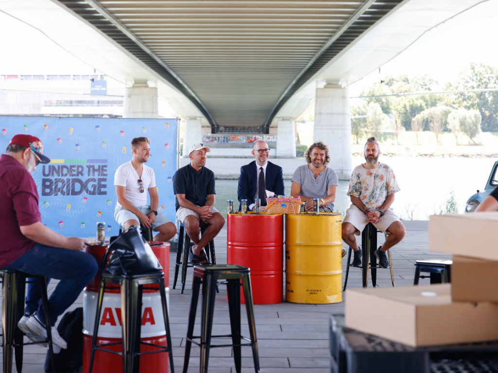 Bürgermeister Dietmar Prammer (Bild Mitte) stellte zusammen mit den Projektbetreibern von Good Karma Gastro "Under the brigge" vor, das in den Sommermonaten für eine Belebung des Areals unter der Neuen Eisenbahnbrücke sorgt.