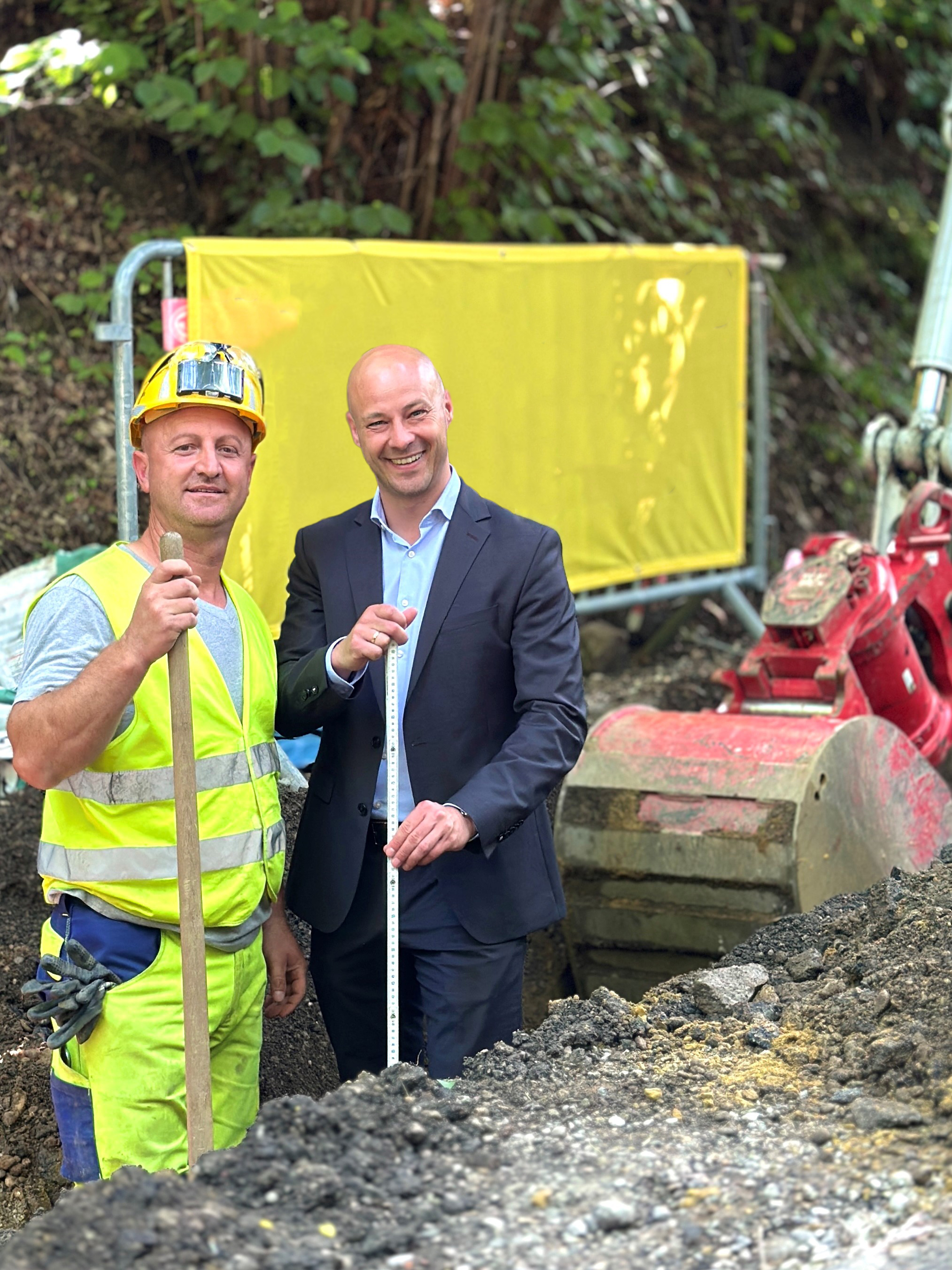 Mobilitätsreferent Vizebürgermeister Mag. Martin Hajart überzeugt sich vom Fortschritt der Bauarbeiten.