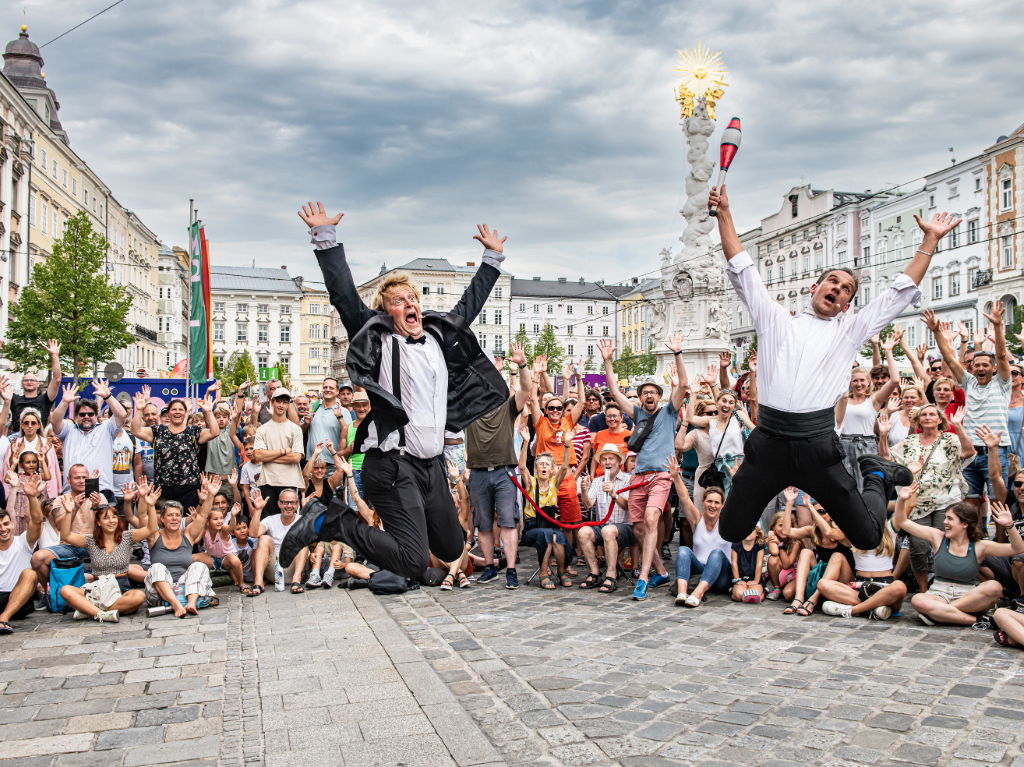 Dass es sich beim Pflasterspektakel nicht nur um eine geschätzte Linzer Tradition, sondern auch um ein international angesehenes Straßenkunstformat handelt, zeigt sich an den zahlreichen Bewerbungen aus aller Welt. Die Künstler*innen schätzen die professionelle Organisation und das wertschätzende Klima in Linz und kommen deshalb immer wieder gerne zum Festival. Das ermöglicht den Veranstalter*innen, auch heuer ein qualitativ hochwertiges Programm zu bieten, das durch seine Vielfalt einen besonders niederschwelligen Zugang zu darstellender Kunst ermöglicht. An die 300 Auftritte erwarten die Besucher*innen täglich. Die Künstler*innen gestalten das Programm und spielen auch dieses Jahr für das Hutgeld der Besucher*innen. Am Ende der Darbietung werden Scheine und Münzen gesammelt. Dass dieses System im Rahmen eines Festivals so gut funktioniert, liegt an der großen Wertschätzung durch das Linzer Publikum, das die Auftritte der Künstler*innen entsprechend honoriert. Als besonderes Service gibt es am Hauptplatz neben dem Infopoint eine Geldwechselstation, wo man große Scheine in Münzen und kleine Scheine wechseln kann. Darüber hinaus stehen im KC Landstraße der Raiffeisenlandesbank OÖ (Landstraße 15) zwei Cash-Recycling-Geräte im Innenbereich der SB-Zone zur Verfügung, bei denen 5-Euro-Scheine behoben werden können.