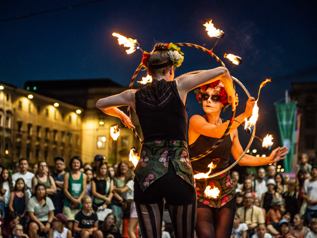 Natürlich dürfen auch die beliebten Feuershows am Pflasterspektakel nicht fehlen. Die faszinierenden Darbietungen mit Pyrotechnik und LED ziehen von 20 Uhr bis 23 Uhr in ihren Bann und finden am Hauptplatz und Tummelplatz statt.