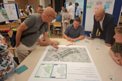 Mobilitätsreferent Vizebürgermeister Mag. Martin Hajart (stehend rechts) im Gespräch mit Bürger*innen über Ideen zur neuen Hauptstraße.