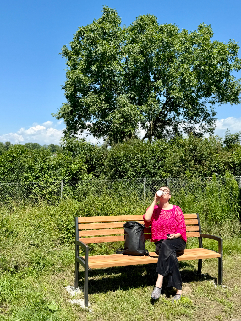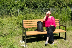 Klimastadträtin Mag.a Eva Schobesberger bei einer neuen Bank in der Heliosallee in Linz-Pichling.