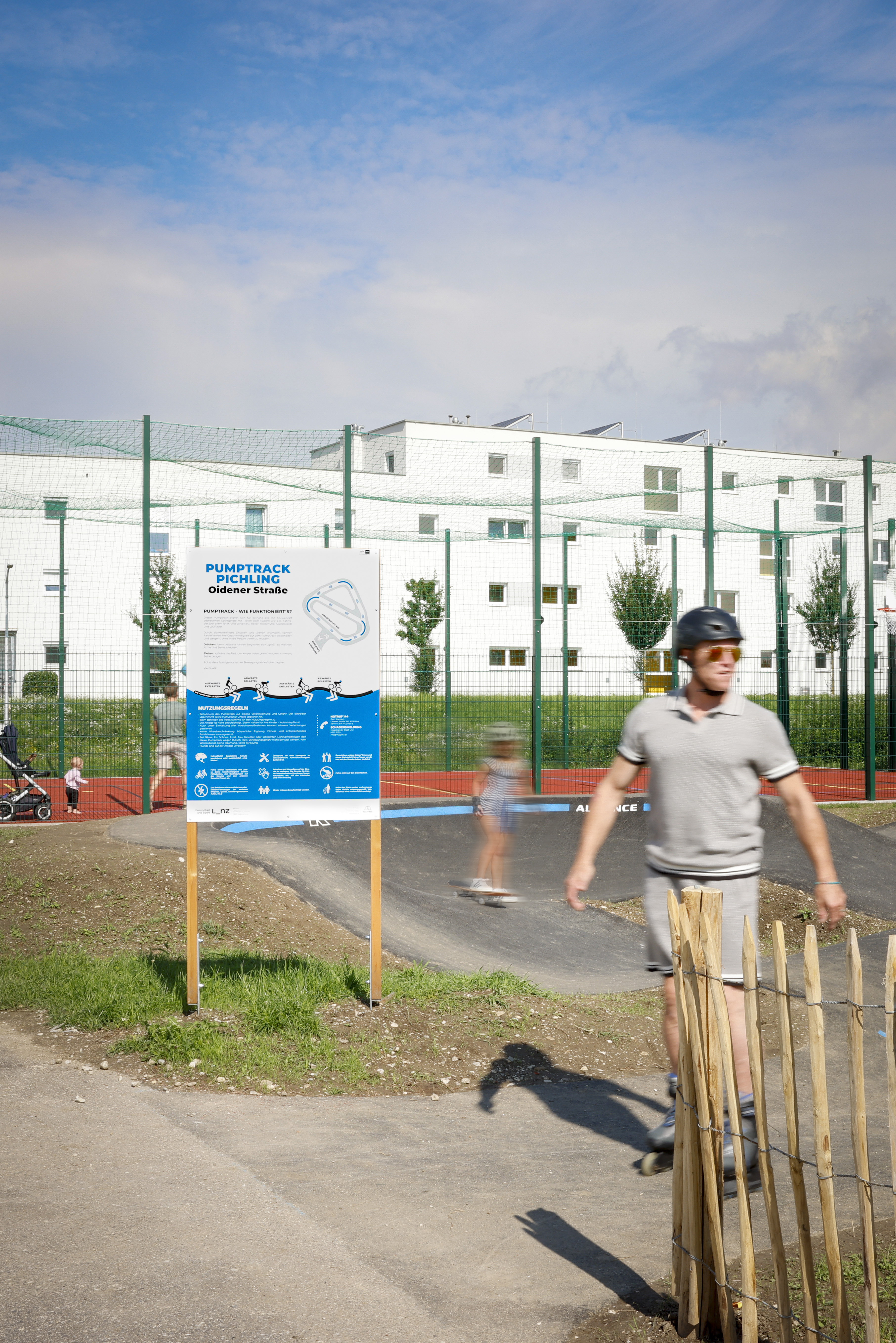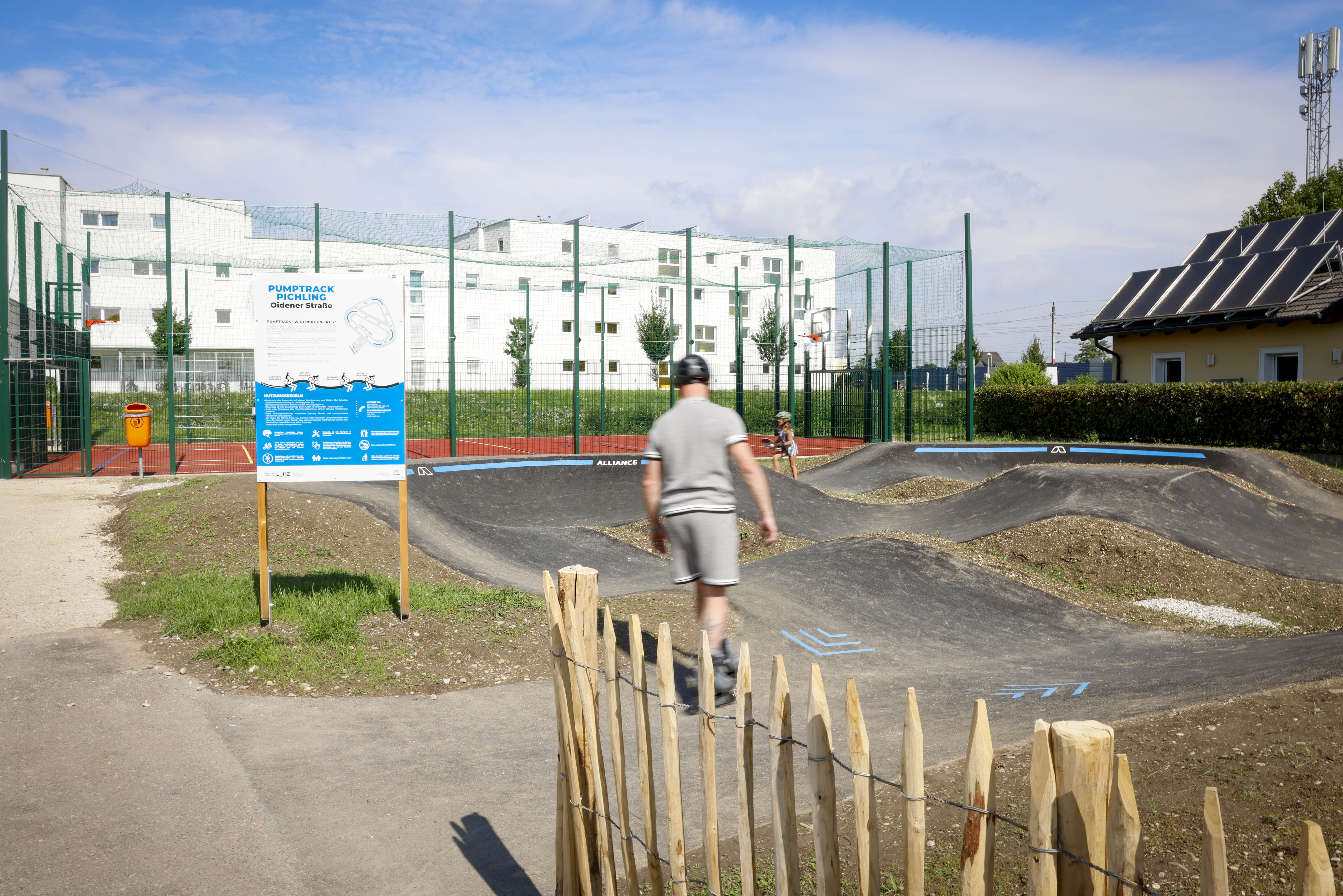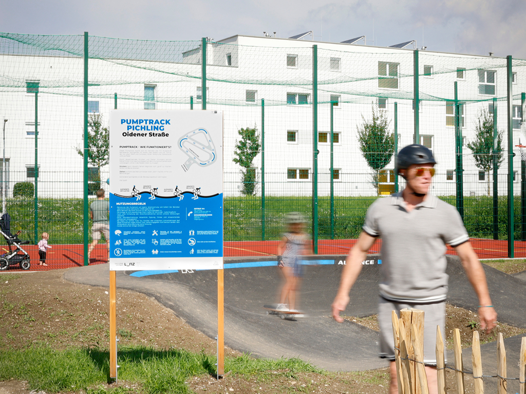 Die neuen Sportanlagen in der Oidener Straße 100 in Pichling bestehen aus einem Pumptrack und einer Ballsportanlage.