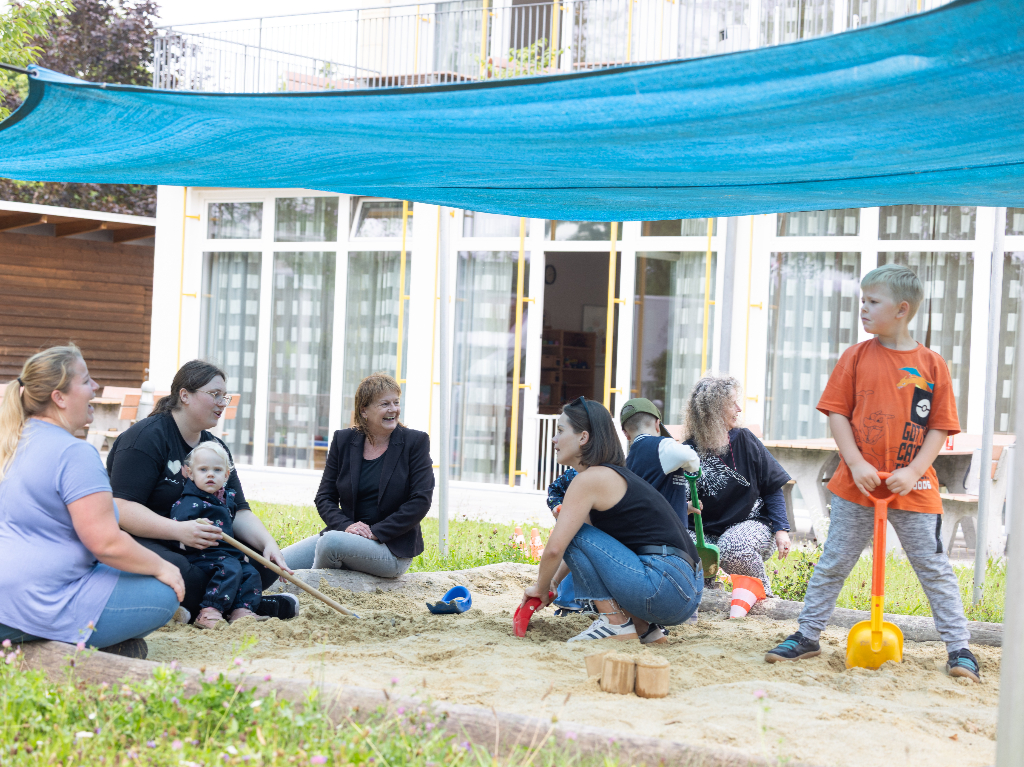 Vizebürgermeisterin Karin Hörzing (Mitte) bei einem Nachmittagsbesuch im Familienzentrum Pichling.