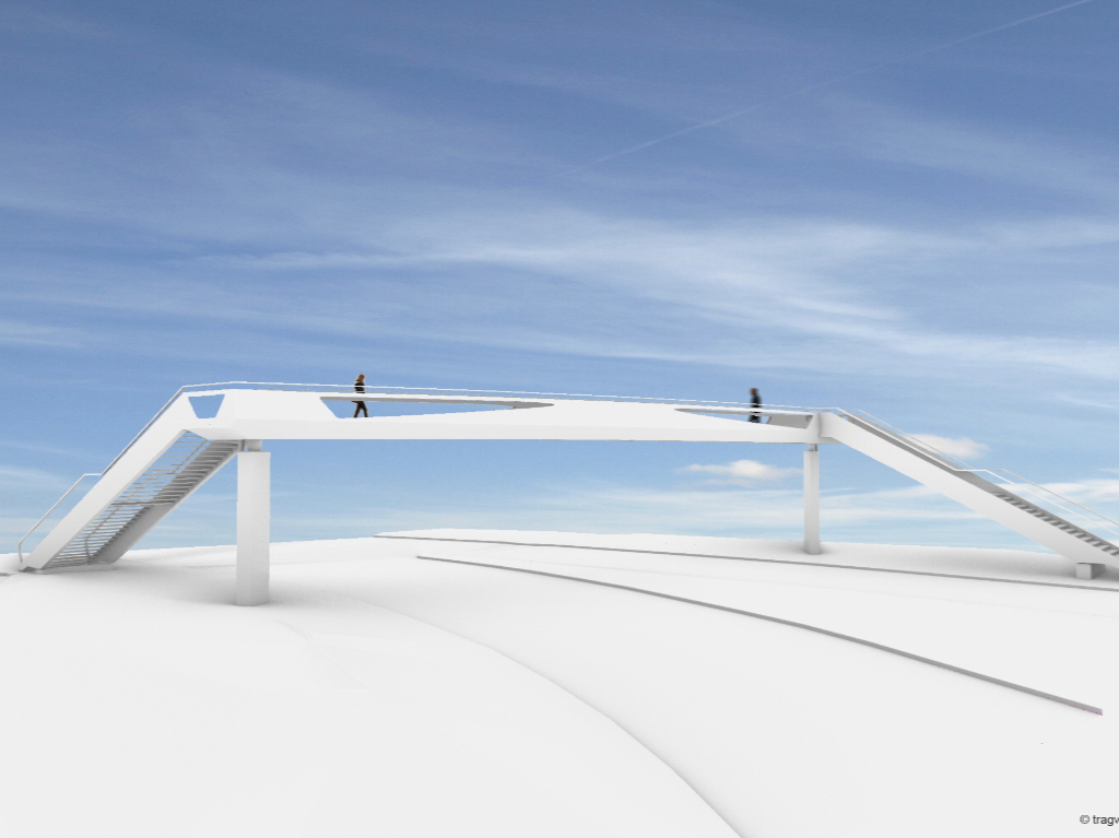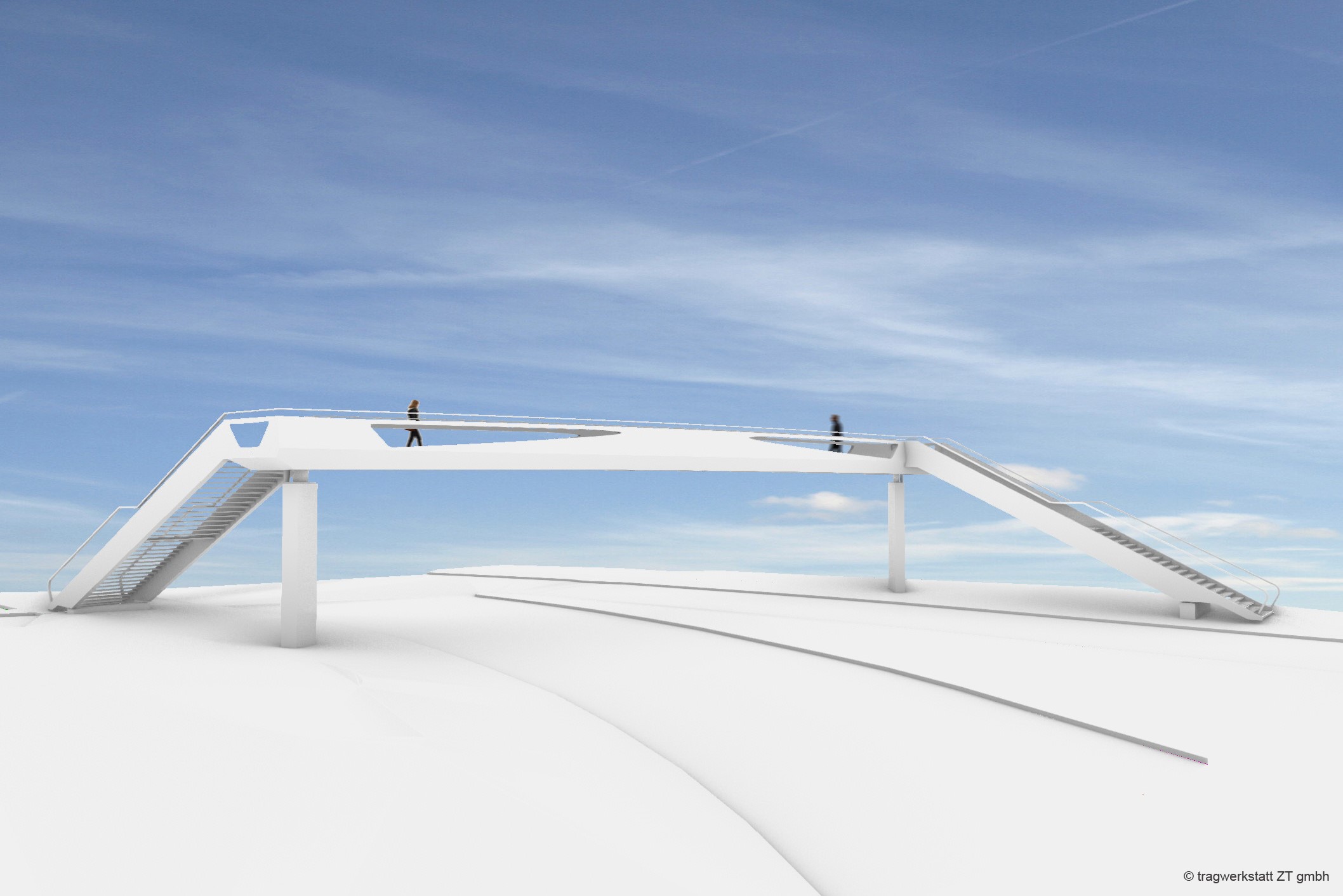 Die neue Brücke wird als 55 Meter langer, schlanker Trogquerschnitt in Stahlbauweise ausgeführt. Die beidseitigen Treppenanlagen sowie eine lichte Gehwegbreite von zwei Metern sorgen für barrierearme Zugänglichkeit. Eine LED-Beleuchtung ist in die Handläufe integriert und sorgt für mehr Sicherheit – auch bei Dunkelheit.