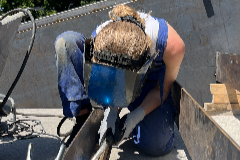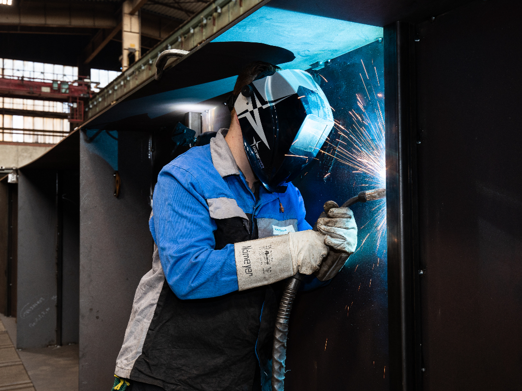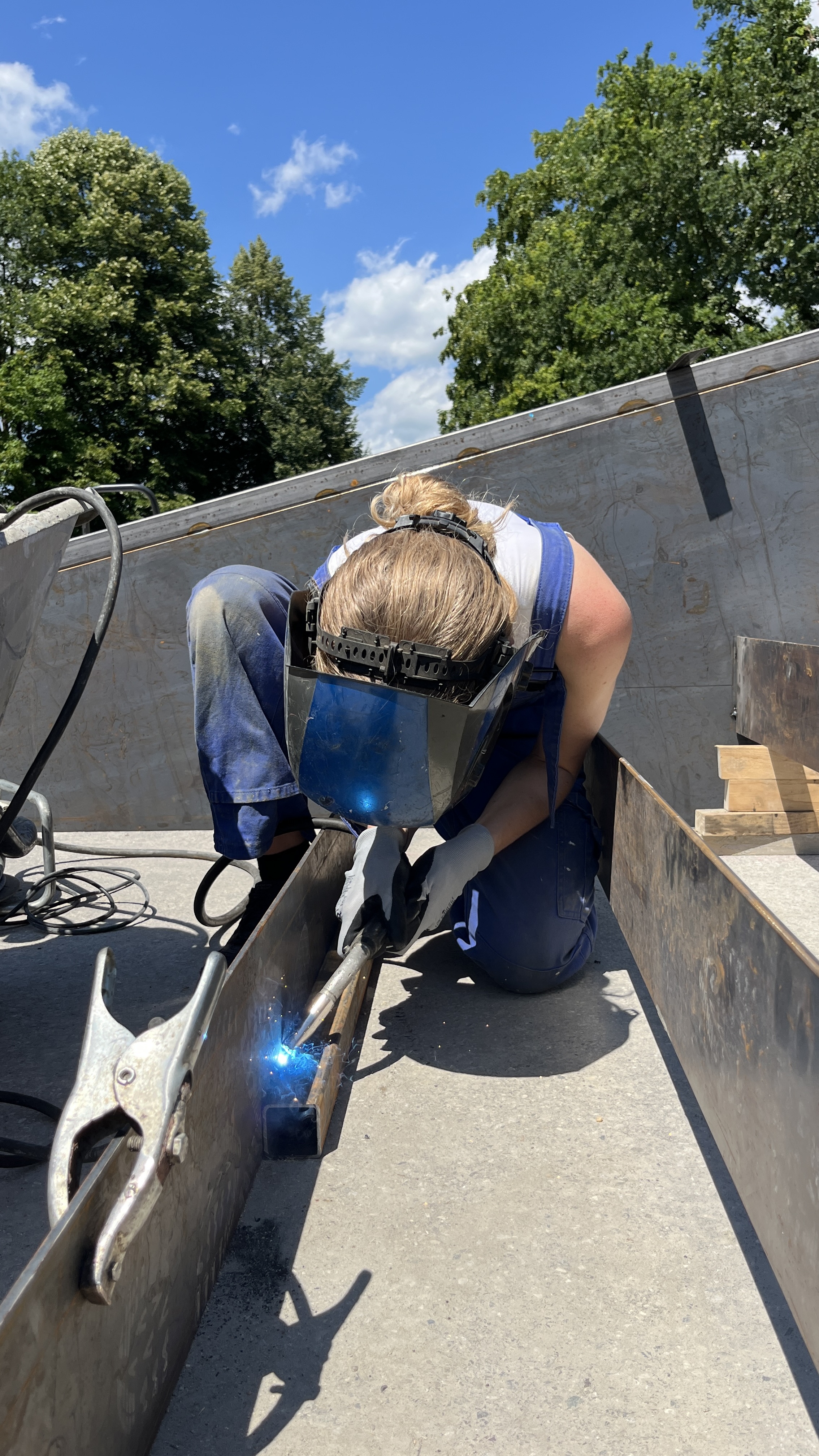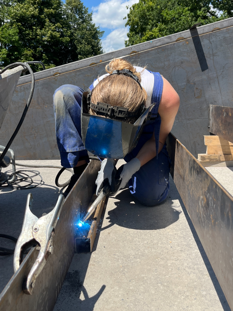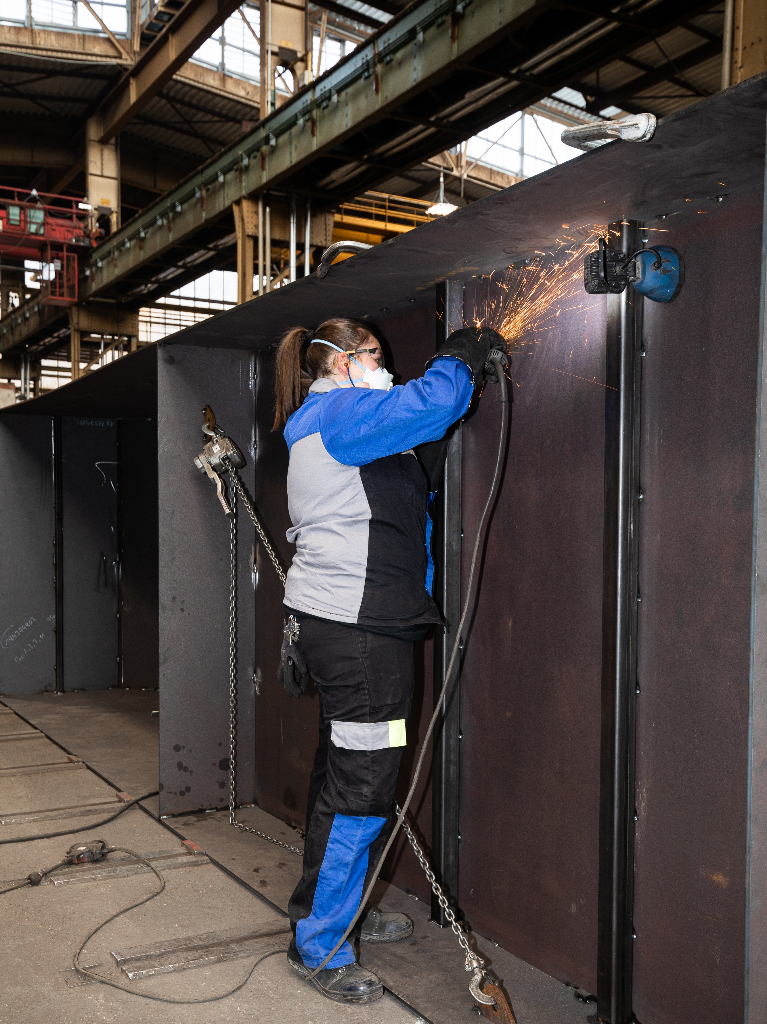 Fotos aus der voestalpine AG Werkstatt, in der die Skulptur entstanden ist