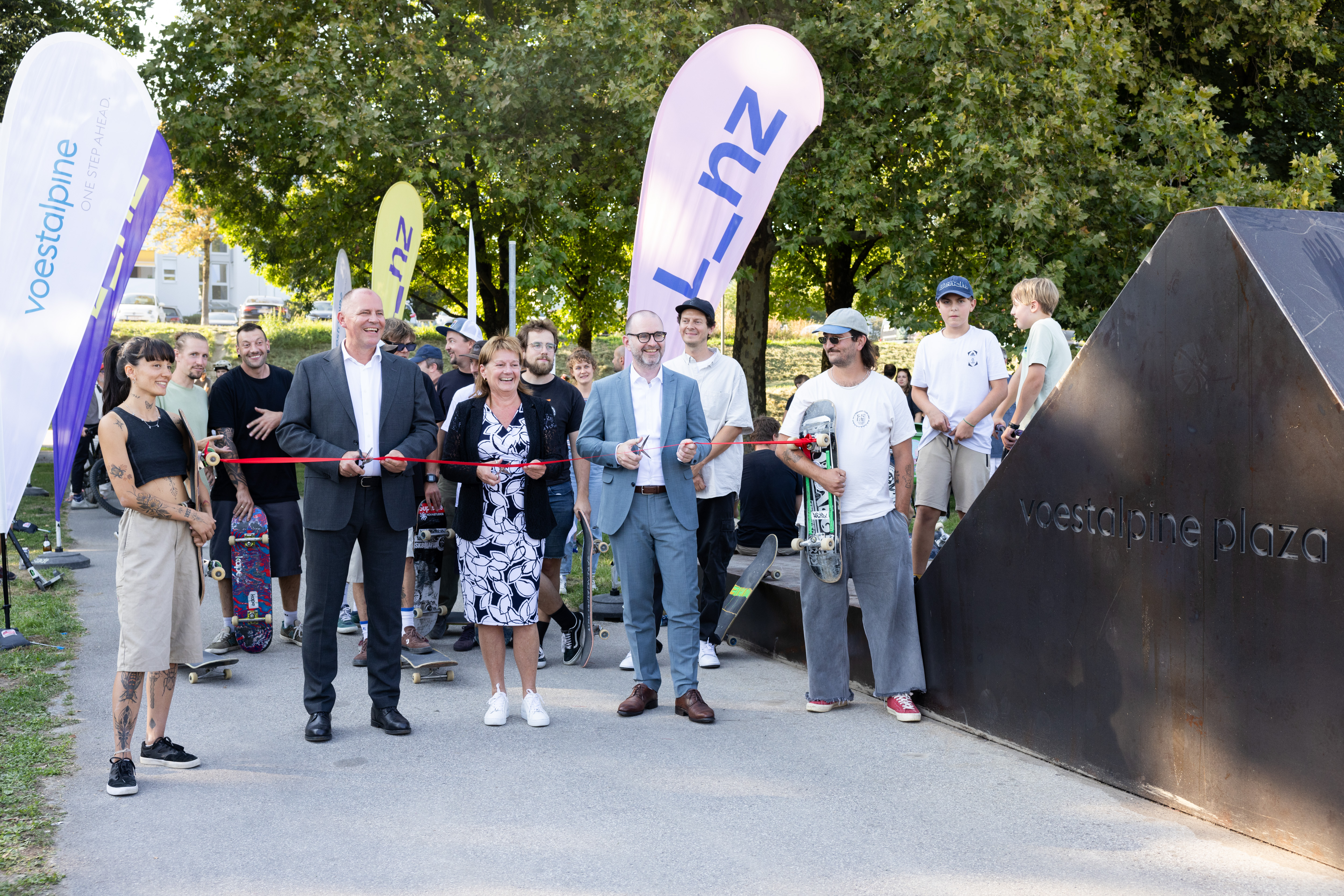 „Der voestalpine plaza steht sinnbildlich für das, was wir mit greentec steel – dem größten Klimaschutzprogramm Österreichs – leben: die Gestaltung einer lebenswerten Zukunft durch konkrete Umsetzung statt bloßer Ankündigungen. Wie bei greentec steel setzen wir auch hier auf Innovation, Nachhaltigkeit und Verantwortung. Mit mehr als 200 Quadratmetern CO₂-reduzierten Stahlblechen aus der greentec steel Edition und dem Einsatz unserer jungen Fachkräfte entstand gemeinsam mit der Stadt Linz ein sichtbares Beispiel dafür, wie Industrie und Gesellschaft gemeinsam Verantwortung übernehmen können. Der Skatepark verbindet damit auf eindrucksvolle Weise Sport, Gemeinschaft und die industrielle Identität von Linz“, betont Dipl.-Ing. Hubert Zajicek, MBA, Mitglied des Vorstands der voestalpine AG und Leiter der Steel Division.