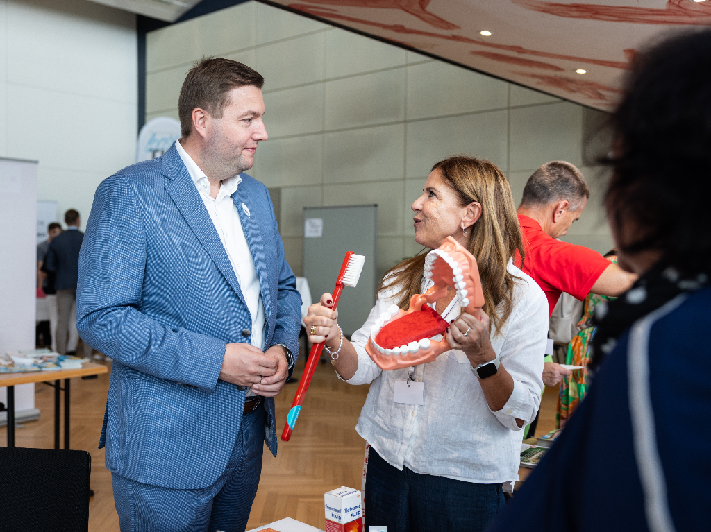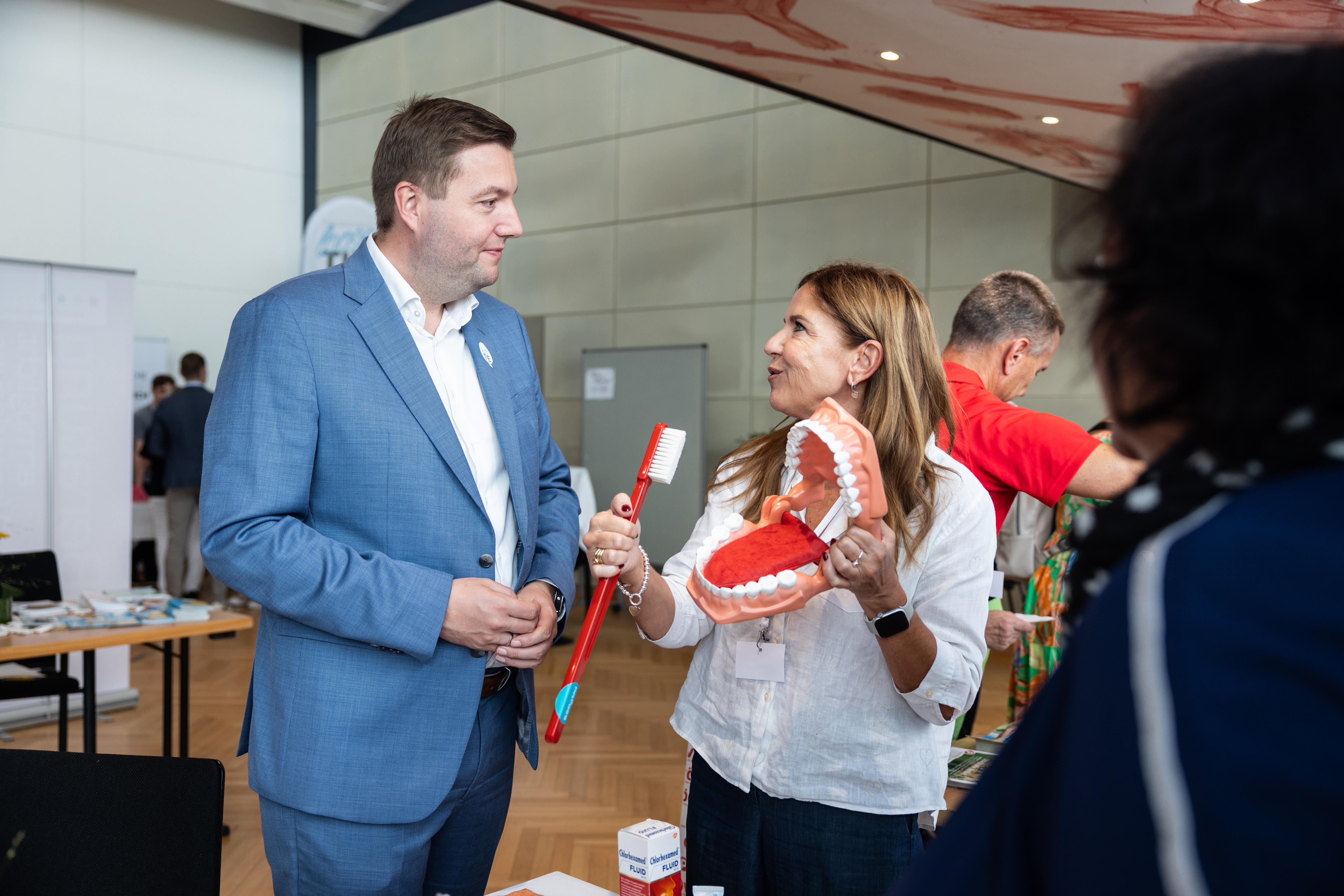 Gesundheitsstadtrat Dr. Michael Raml freute sich über regen Zulauf beim Linzer Gesundheitstag 2025 und machte sich bei den Stationen selbst ein Bild vom vielfältigen Angebot.