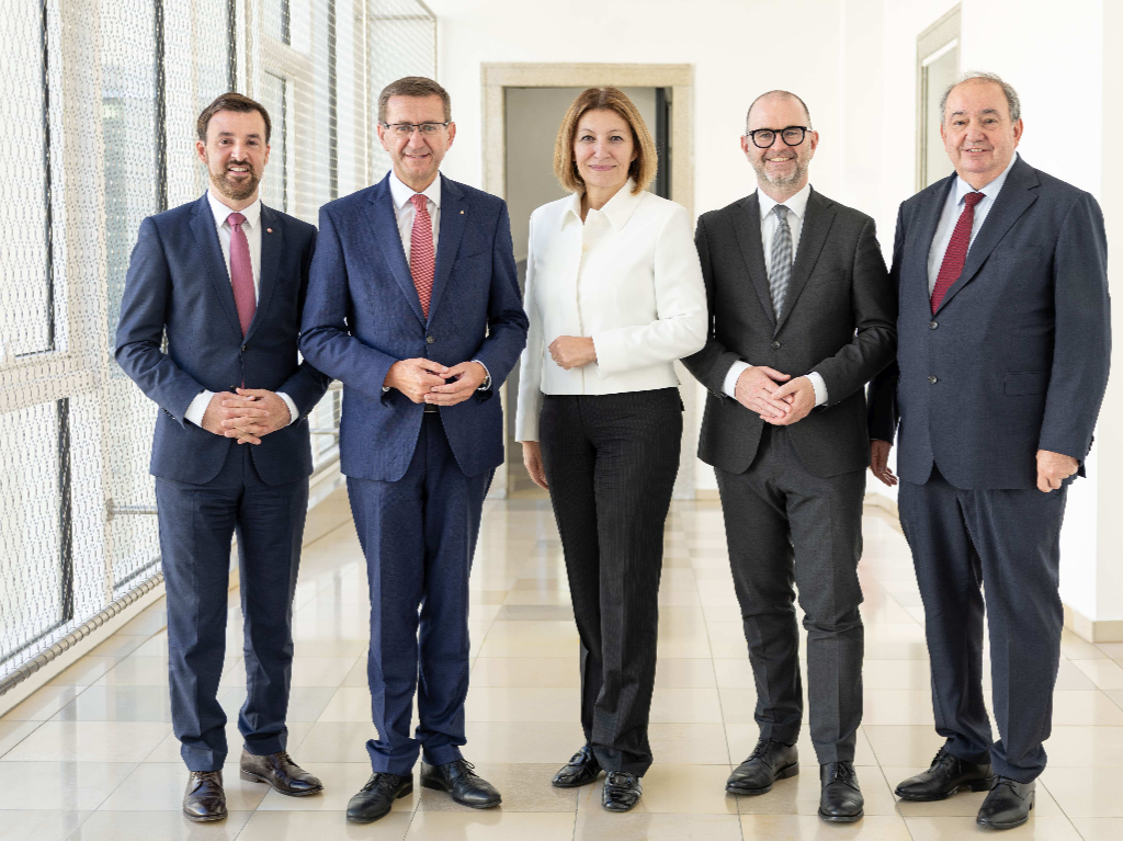 Oberösterreich und Linz entwickeln sich zur Drehscheibe für den Wasserstoff-Aufbau. Im Bild Alexander Kirchner, CTO ENERGIE AG, Landesrat Markus Achleitner, Susanna Zapreva, Vorständin VERBUND AG, Bürgermeister Dietmar Prammer und Erich Haider, Generaldirektor LINZ AG.