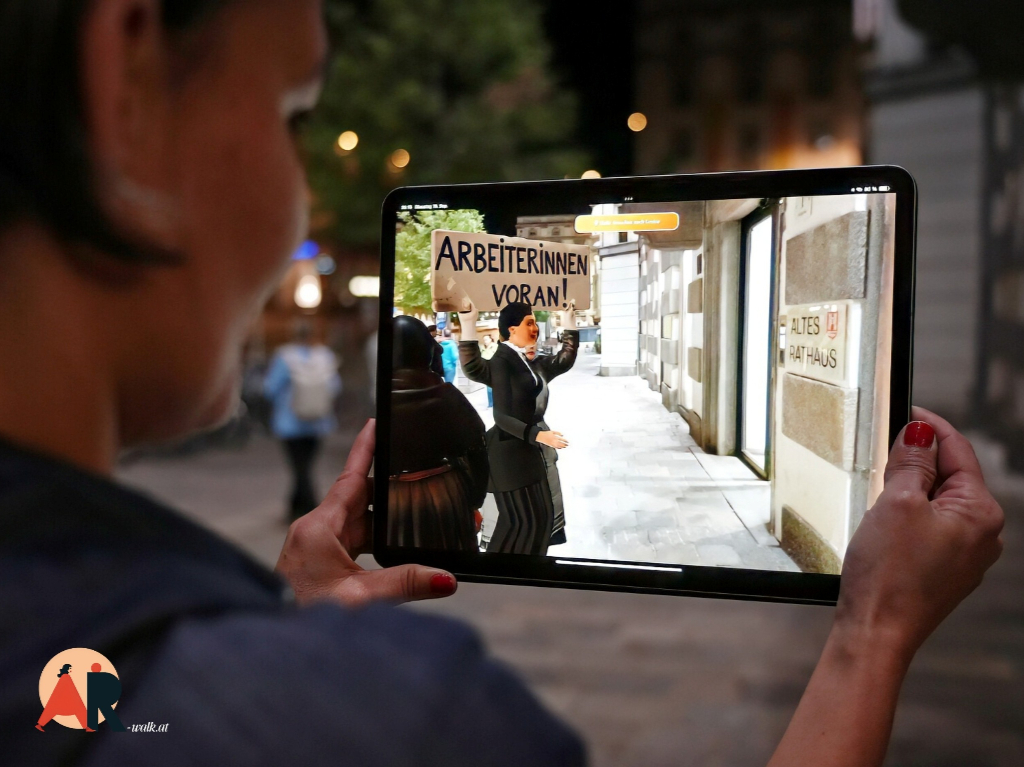 Mit der so genannten „Augmented Reality“ (AR) werden die Pionierinnen durch computergenerierte Bilder auf dem Bildschirm wieder in die Stadt geholt.