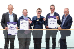 V.l.: DI Dr. Ulrich Wieltsch; Director Engineering, License to Operate and Site Services, Patheon part of Thermo Fisher, Elisabeth Krainz-Blum, Inhaberin von „Mein Müli – Der Bioladen“, Umweltstadträtin Mag.a Eva Schobesberger, DI Dr. Stefan Gintenreiter; MBa, Geschäftsführer der LIWEST Kabelmedien GmbH, DI Alfred Moser, Abteilungsleiter Gewerbe- und Sicherheitstechnik im Geschäftsbereich Planung, Technik und Umwelt Stadt Linz und Projektleiter Lichtverschmutzung bei der Urkundenverleihung der teilnehmenden Betriebe der Mitmachaktion „Lina“.