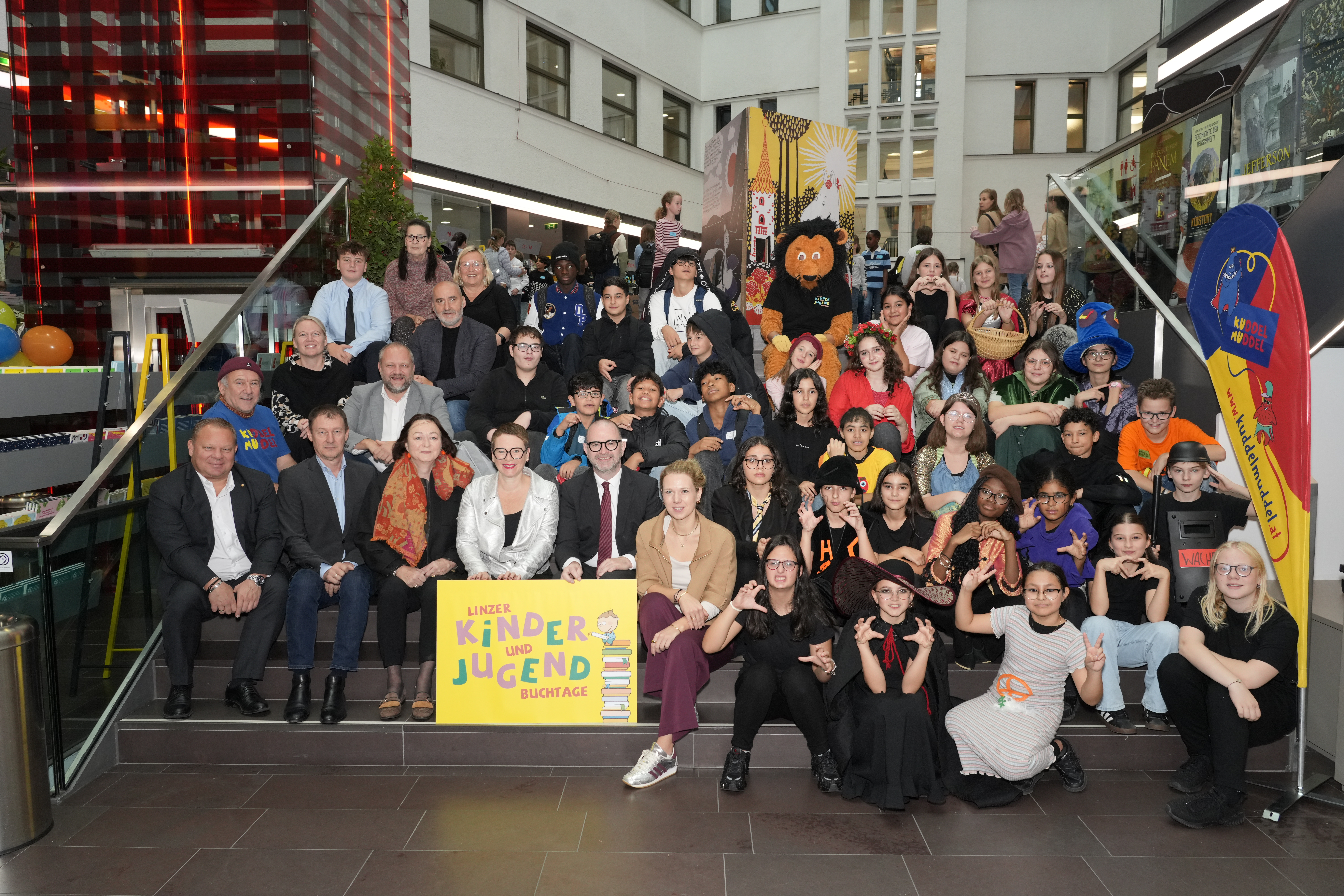 Bürgermeister Dietmar Prammer, Bildungsstadträtin Eva Schobesberger und Nationalratsabgeordnete Johanna Jachs eröffneten die Veranstaltung gemeinsam mit Stadtbibliotheks-Leiter Markus Danner, Kuddelmuddel-Leiter Manfred Forster und Sabine Weißensteiner von der Buchhandlung Fürstelberger. Auch der stellvertretende Direktor Ernst Stummer und Bernadette Hauer von der Arbeiterkammer OÖ sowie Heinz Falmbigl von der Wiener Städtischen Versicherung nahmen an der Eröffnung teil.