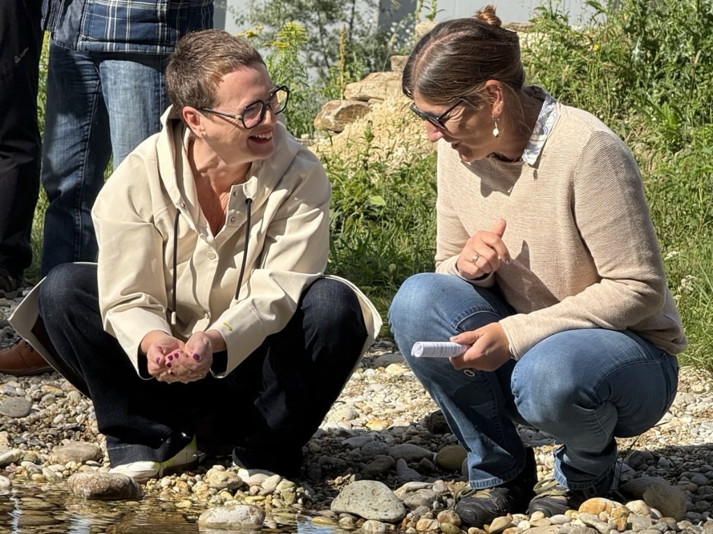 Naturschutzreferentin Stadträtin Mag.a Eva Schobesberger und Mag.a Gudrun Fuß, Mitarbeiterin der Naturkundlichen Station, bei einem Amphibienteich.