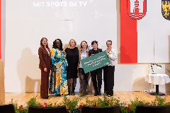 Verleihung des Marianne.von.Willemer-Frauen.Literatur.Preises: v.l.n.r.: Personaldirektorin Mag.a Brigitta Schmidsberger, Frauenbeauftragte Mag.a Abena Carty-Pinner, Claudia Romeder (Jury), Sabine Weißensteiner (Jury), Preisträgerin Lisa-Viktoria Niederberger, Frauenstadträtin Mag.a Eva Schobesberger