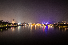 Die neue Eisenbahnbrücke stellt einen besonderen Fall dar: Auf einem Streckenabschnitt von rund 450 Metern wurden insgesamt 824 Leuchten gezählt. Positiv hervorzuheben ist, dass die nach oben strahlenden Bodenstrahler in den späten Nachtstunden abgeschaltet werden. Die eingesetzten LEDs liegen mit ihrer Lichtfarbe im warmweißen, also empfohlenen Bereich. Dennoch verbleiben viele Außenleuchten aktiv, die ausschließlich auf die Wasseroberfläche der Donau strahlen und keinen erkennbaren funktionalen Zweck erfüllen.