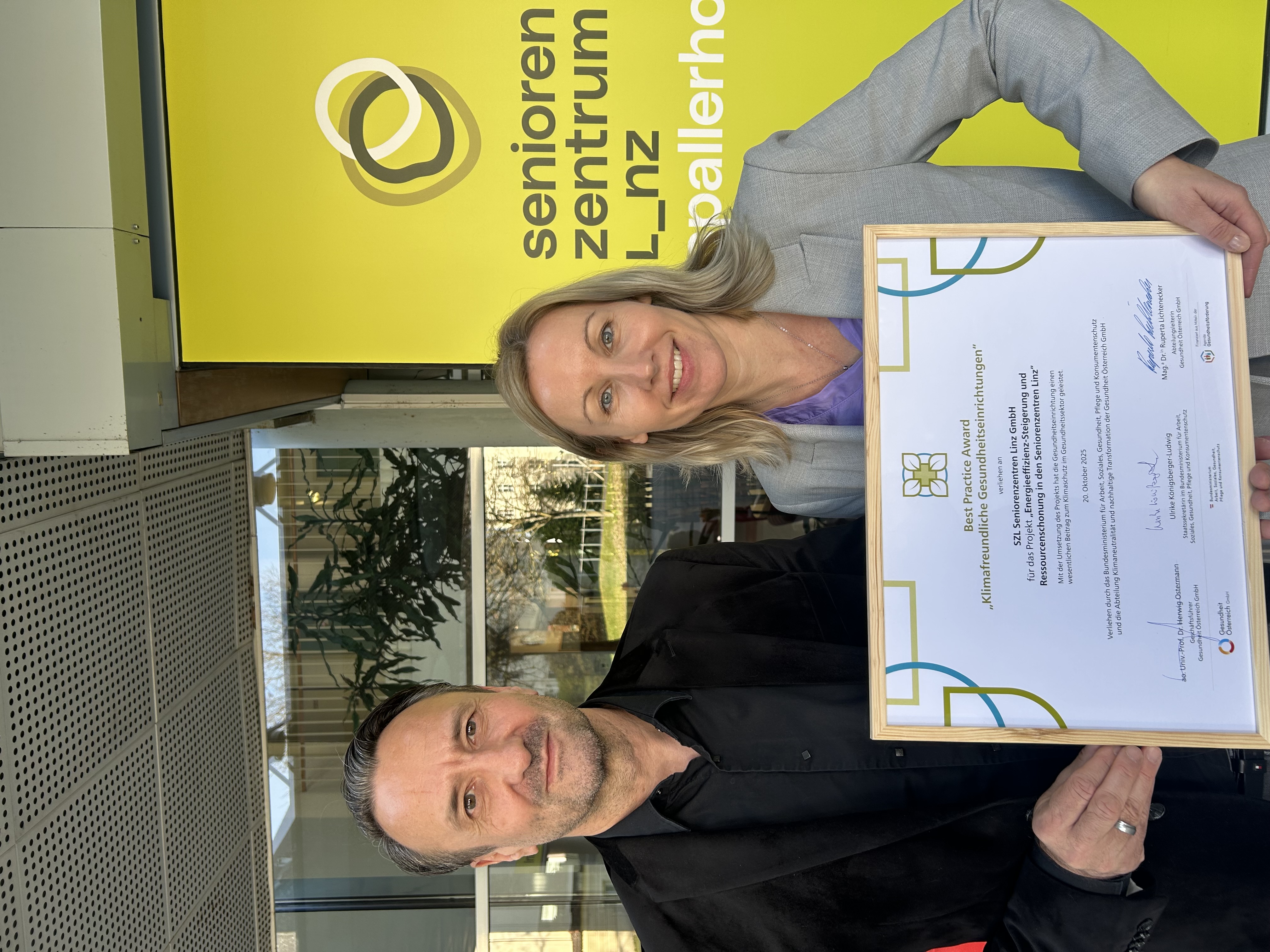 Best Practice Award: Klimafreundliche Linzer Gesundheitsbetriebe Die SZL Seniorenzentren Linz GmbH wurden als Vorreiterinnen im Klimaschutz ausgezeichnet