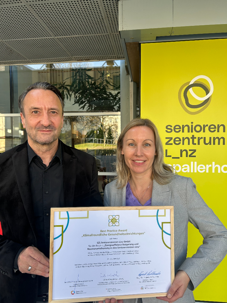 Die städtischen Seniorenzentren Linz wurden für ihr Projekt „Energieeffizienz Steigerung und Ressourcenschonung in den Seniorenzentren Linz“ mit dem Best Practice Award „Klimafreundliche Gesundheitsbetriebe“ ausgezeichnet. Mit dem Beitritt der zehn Seniorenzentren zum Klimabündnis Österreich im Juli 2023 hat das Unternehmen einen bedeutenden Schritt im Bereich Klimaschutz gesetzt.