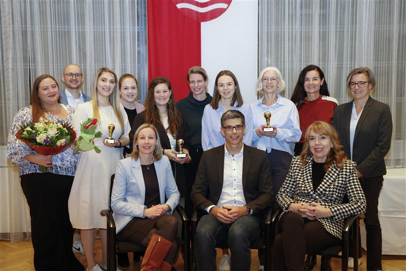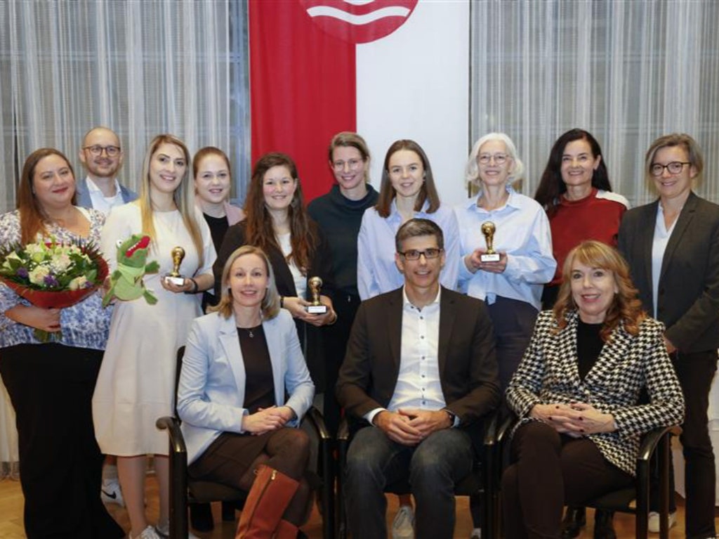 Sozialreferentin Vizebürgermeisterin Karin Leitner (vo. li.) überreichte den glücklichen Gewinner*innen für ihre eindrucksvollen Projekte den „Preis für soziale Innovationen 2025“.