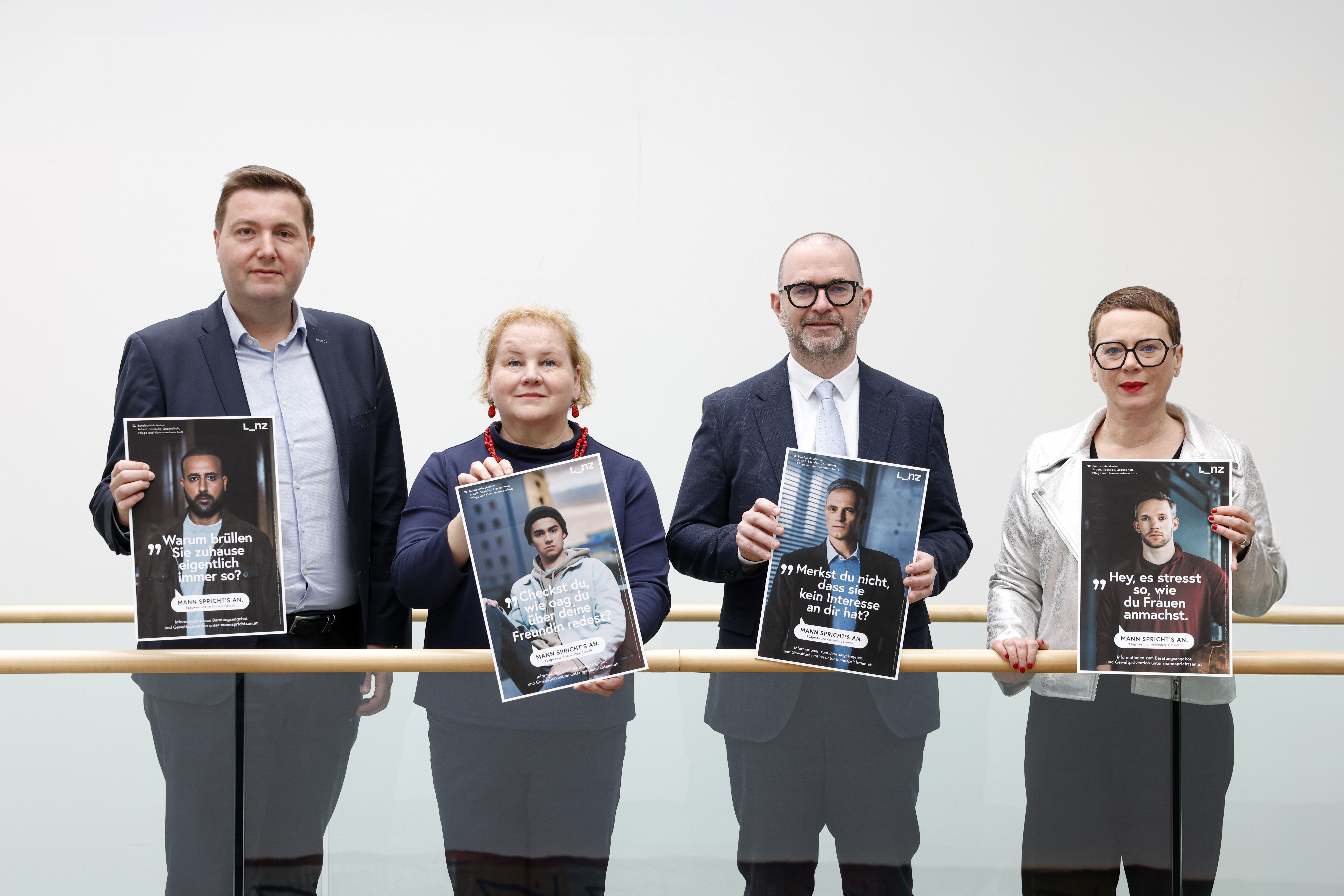 „Jede Frau hat das Recht auf ein gewaltfreies Leben. In der Realität ist Gewalt von Männern gegen Frauen aber ein Alltagsproblem, sie passiert jeden Tag und überall. Echte Veränderung erreichen wir nur, wenn wir auch überall ansetzen: in Betrieben, in Schulen, im öffentlichen Raum, in der Nachbarschaft und in unserem eigenen sozialen Umfeld. Hier setzt die Kampagne an und stellt dem Täterbild ein positives Männerbild gegenüber – Männer, die nicht wegsehen, sondern im richtigen Moment einschreiten. Die Sujets zeigen Alltagssituationen und geben klare Handlungsalternativen. Oft reicht ein einziger Satz, um Übergriffe zu stoppen oder gar nicht erst entstehen zu lassen – egal ob im Fitnesscenter, auf der Weihnachtsfeier, am Arbeitsplatz oder im Freundeskreis. Natürlich helfen prominente Vorbilder, die Gewalt von Männern ansprechen und sich einsetzen, doch am Ende reicht das nicht. Entscheidend ist, dass wir alle Verantwortung übernehmen. Und vor allem, dass Männer sagen: ,Ich spreche es an!‘ Wenn sie das tun, entsteht der Wandel, den wir so dringend brauchen“, betont Korinna Schumann, Bundesministerin für Arbeit, Soziales, Gesundheit, Pflege und Konsumentenschutz.