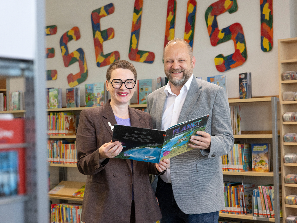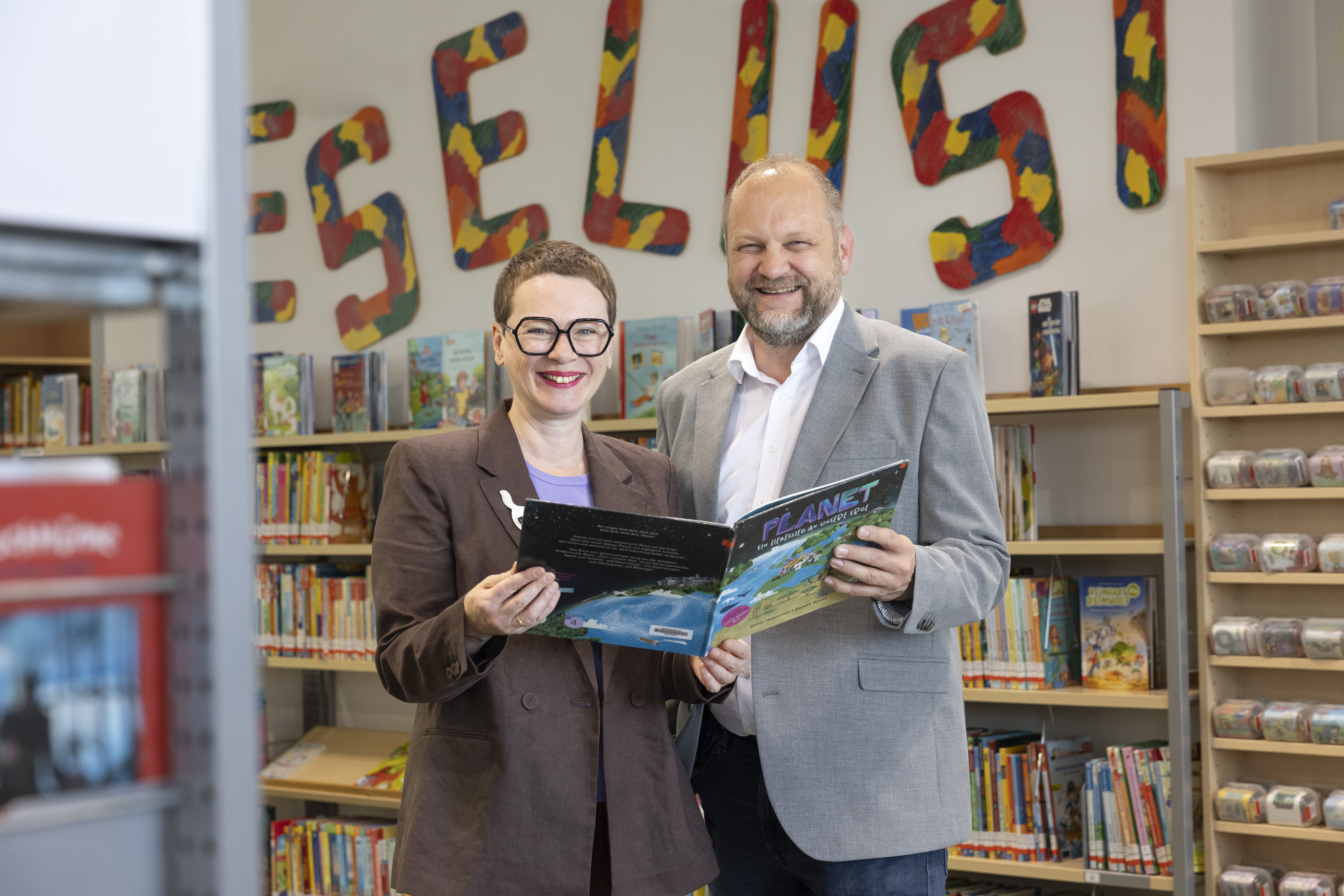 Bildungsstadträtin Mag.a Eva Schobesberger und Markus Danner, Abteilungsleiter Stadtbibliothek.