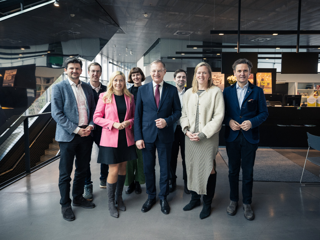 v.l.n.r. Gernot Barounig (Lentos/Nordico), Andreas Bauer (AEC), Stadträtin Doris Lang-Mayrhofer, Claudia Lehner (StifterHaus), LH Thomas Stelzer, Manfred Mandl-Kiblböck (OÖ LKG), Marie-Luise Schnurpfeil (Linz Tourismus), Andreas Winkelhofer (OÖ Tourismus)