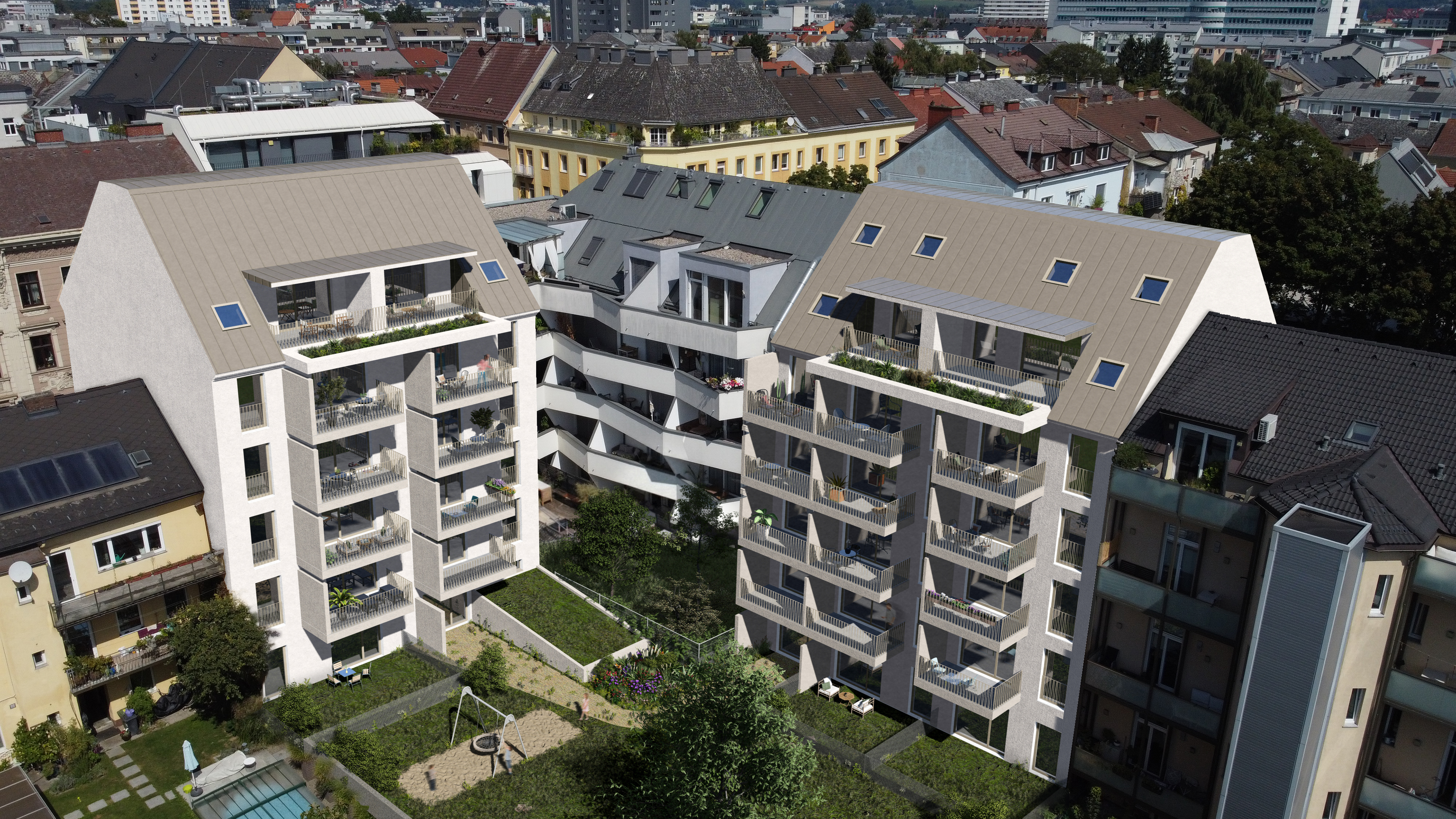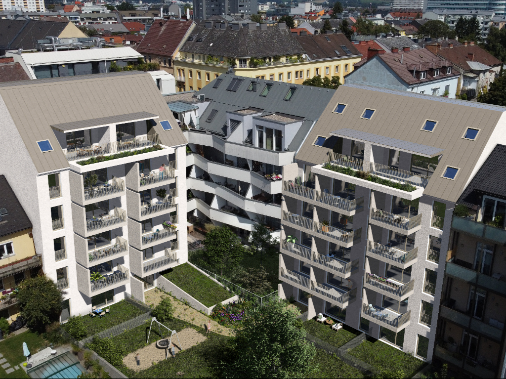 Das Neubauprojekt liegt im innerstädtischen Bereich von Linz an der Kreuzung zweier wichtiger Verkehrsachsen, der Dinghoferstraße und der Lustenauer Straße. Die beiden Baukörper treten im Straßenraum als eigenständige Häuser in Erscheinung, sind jedoch funktional über einen gemeinsamen Innenhof sowie eine durchgehende Tiefgarage verbunden. Mit den Neubauten wird eine städtebauliche Lücke geschlossen und der niedrigere Altbestand entlang der Lustenauer Straße ersetzt. Insgesamt entstehen 27 neue Wohnungen in zwei Wohnhäusern mit jeweils fünf oberirdischen Geschoßen und ausgebautem Dachgeschoß. Bürgermeister Dietmar Prammer betont den Mehrwert des Projekts: „Gerade in innerstädtischer Lage ist ein hochwertiger, begrünter Innenhof ein wichtiger Beitrag zur Wohnqualität und zum urbanen Lebensraum.“