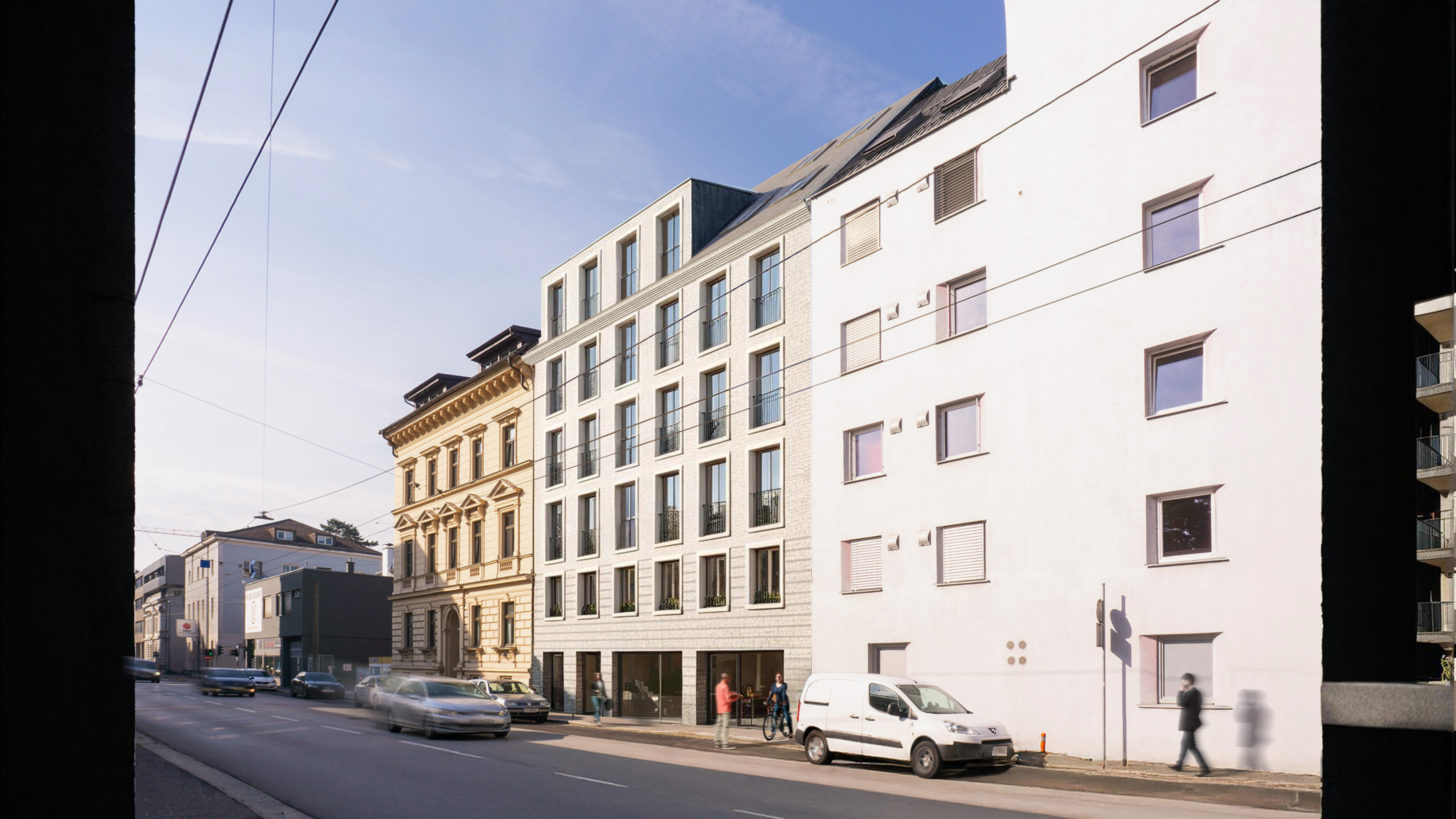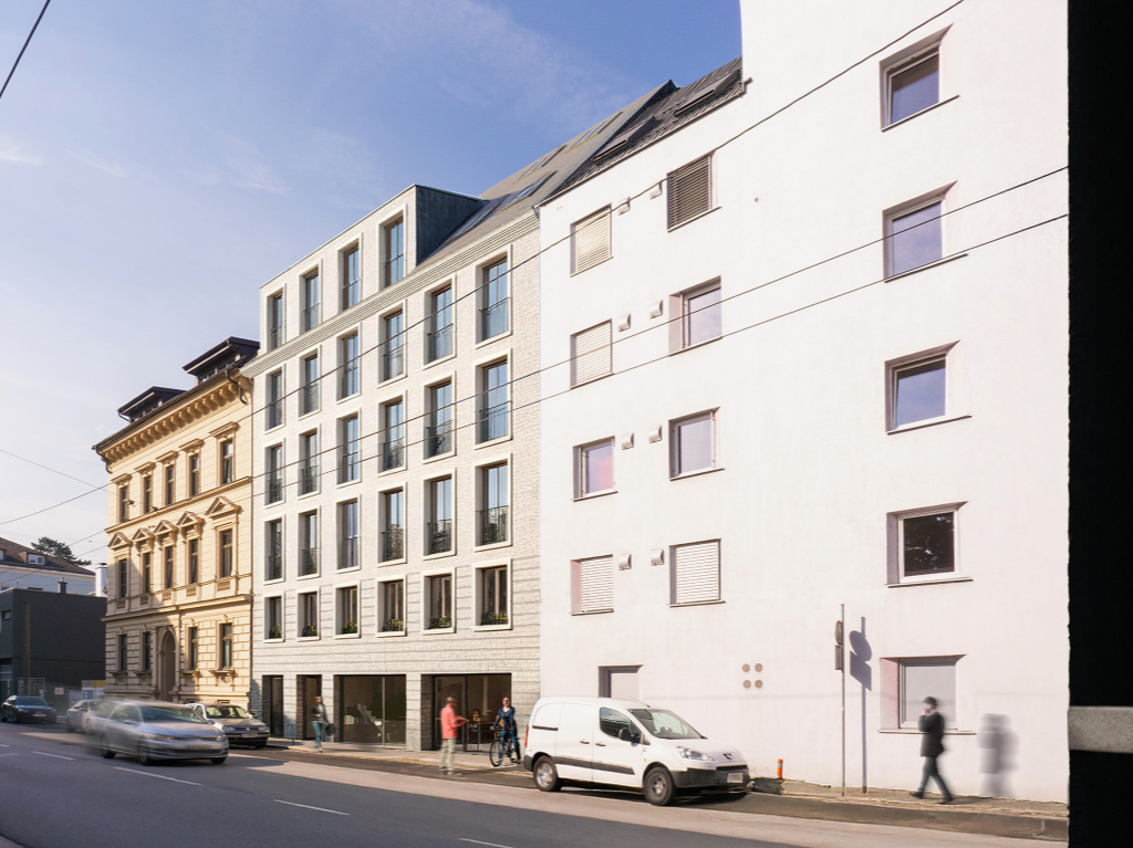 Das Wohnbauprojekt in der Dinghoferstraße 26 / Lustenauer Straße 12 erhielt vom Gestaltungsbeirat grünes Licht für die Einreichung.
