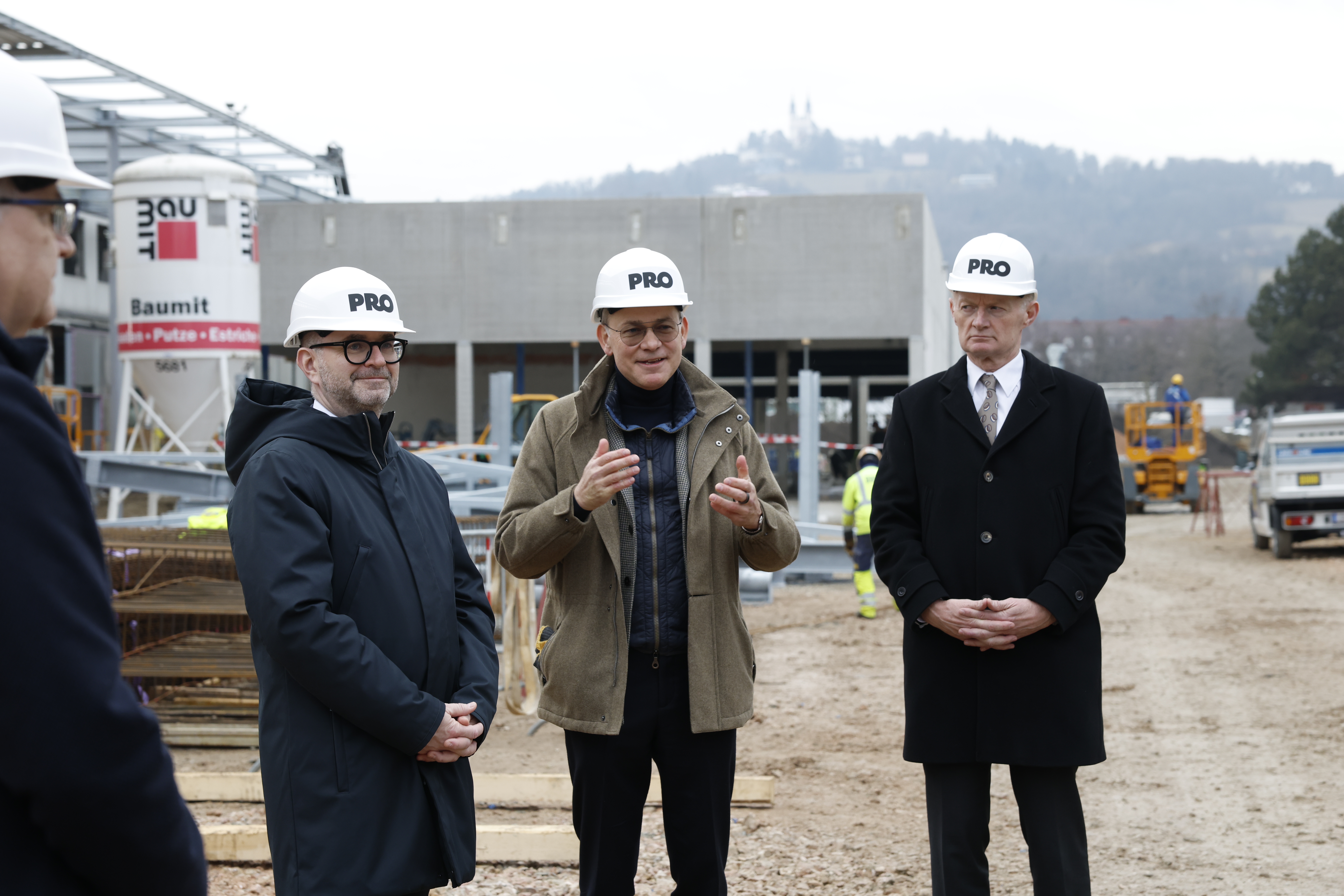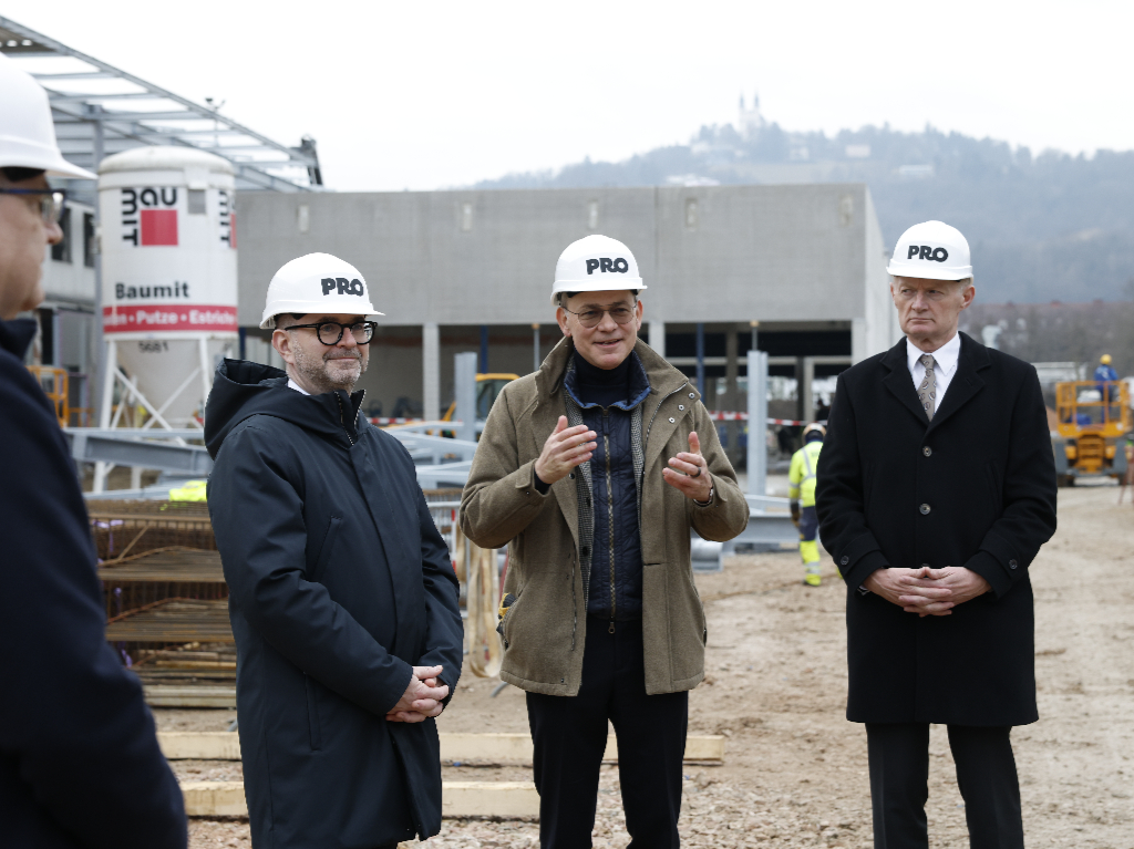 „Es ist mir eine große Freude, dass Bürgermeister Dietmar Prammer mit uns die Baustelle des neuen PRO besichtigt – dieser Termin stellt den ersten offiziellen Besuch in dieser Urfahraner Institution dar, die wir neugestalten dürfen. Besonders bedanken möchte ich mich bei der Stadt Linz und den eingebundenen Magistratsabteilungen für die professionelle Zusammenarbeit“, betont Stefan Rutter, Eigentümer und Geschäftsführer der Rutter Immobiliengruppe.