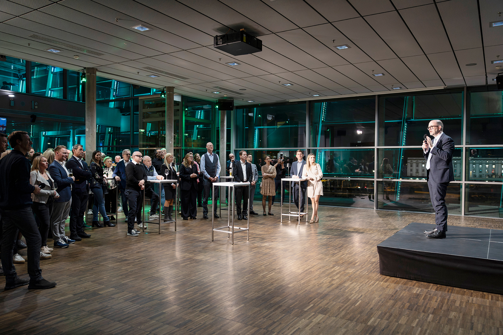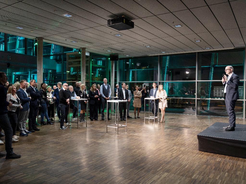 Bürgermeister Dietmar Prammer begrüßte die 100 Gäste, die die Eröffnung des neuen Restaurant Qube im obersten Stock des Ars Electronica Centers feierten