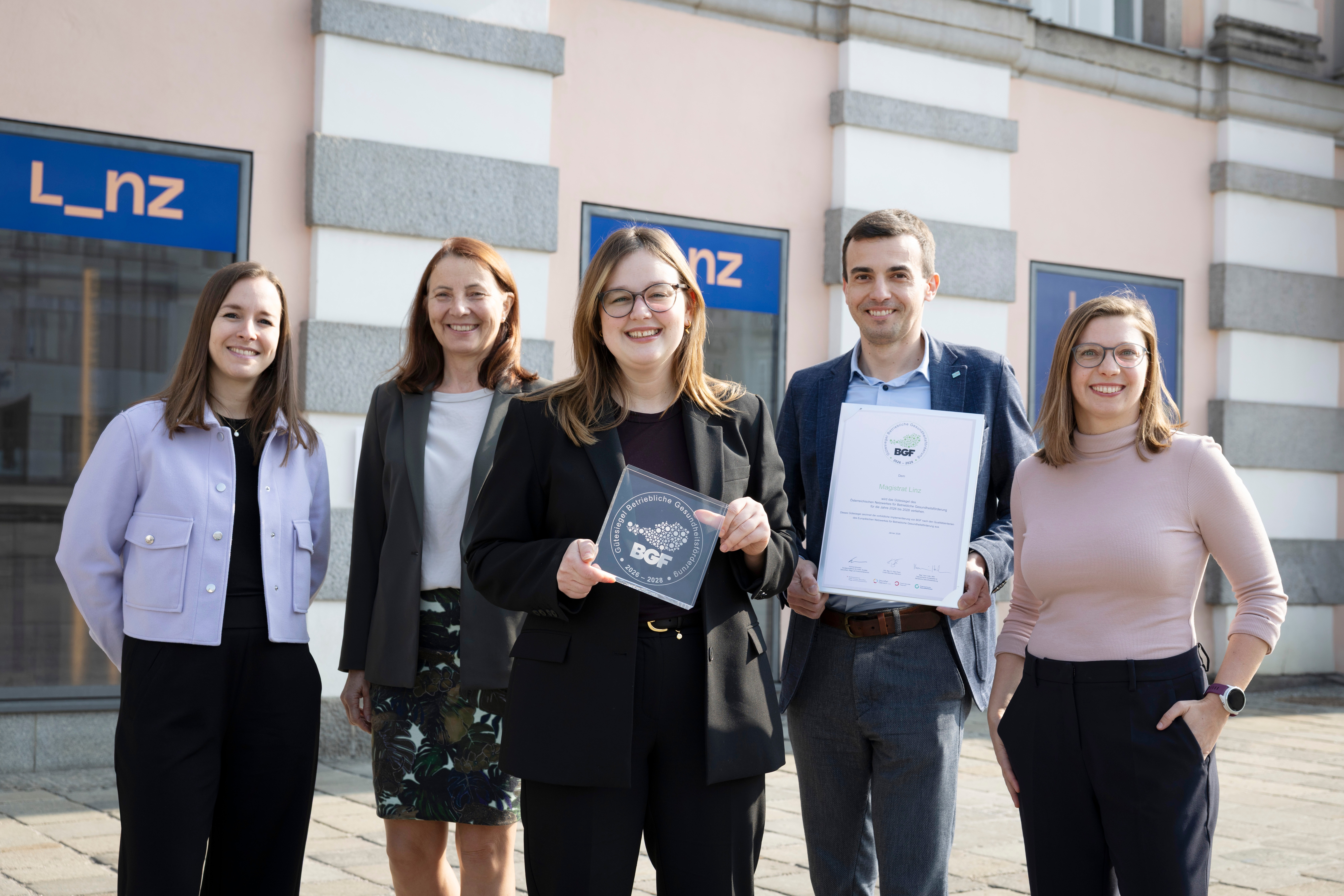 Die Stadt Linz wurde erneut mit dem Gütesiegel für Betriebliche Gesundheitsförderung (BGF) ausgezeichnet. Die Österreichische Gesundheitskasse (ÖGK) verlieh dem Magistrat Linz das Gütesiegel für weitere drei Jahre bis 2028. Damit zählt die Stadt Linz weiterhin zu den Arbeitgeber*innen mit besonders engagierter Gesundheitsförderung in Oberösterreich.