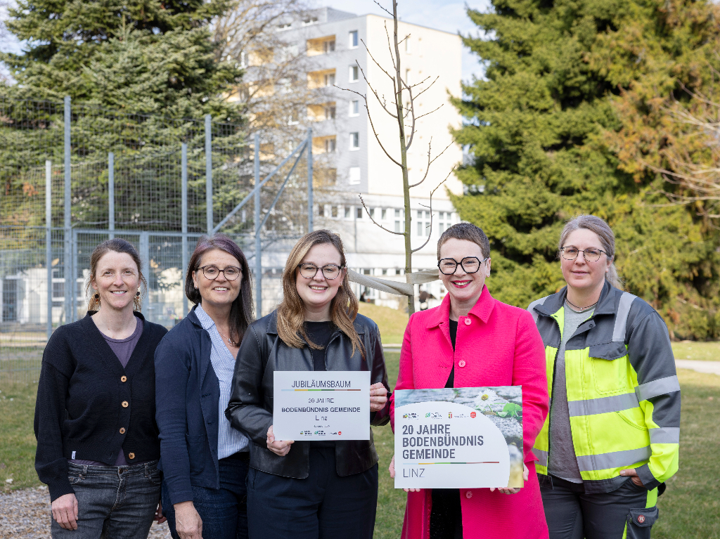 Die Stadt Linz engagiert sich seit mehr als 20 Jahren im Bodenbündnis OÖ und hat anlässlich dieses Jubiläums im Vorjahr von Landesrat Stefan Kaineder einen Baum überreicht bekommen. Dieser wurde nun vor dem Kindergarten in der Johann-Wilhelm-Klein-Straße eingesetzt - als sichtbares Zeichen für Klimaschutz und Verantwortung gegenüber kommenden Generationen.