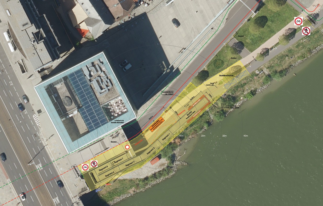 „Mit der neuen breiten Geh- und Radwegrampe beseitigen wir einen Engpass an dieser Schlüsselstelle zwischen Nibelungenbrücke und Donaulände. Auch baulich ist die neue Rampe eine attraktive Lösung, die mehr Komfort und Sicherheit für alle schafft. Die vorgefertigten Stahlsegmente mit dem neuen schlanken Stabgeländer erlaubt eine rasche Umsetzung und halten die Einschränkungen so kurz wie möglich“, betont Mobilitätsreferent Vizebürgermeister Mag. Martin Hajart.