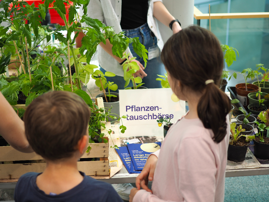 Ein weiteres Highlight des Abends ist die Pflanzentauschbörse, bei der den ganzen Tag lang Pflanzen, Ableger und Saatgut getauscht werden können. Material zum Umtopfen wird von der Bibliothek bereitgestellt. Auch ein Besuch der Dingelei(h) lohnt sich: Hier können ausleihbare Alltagsgegenstände ausprobiert und mit einem 3D-Drucker experimentiert werden.