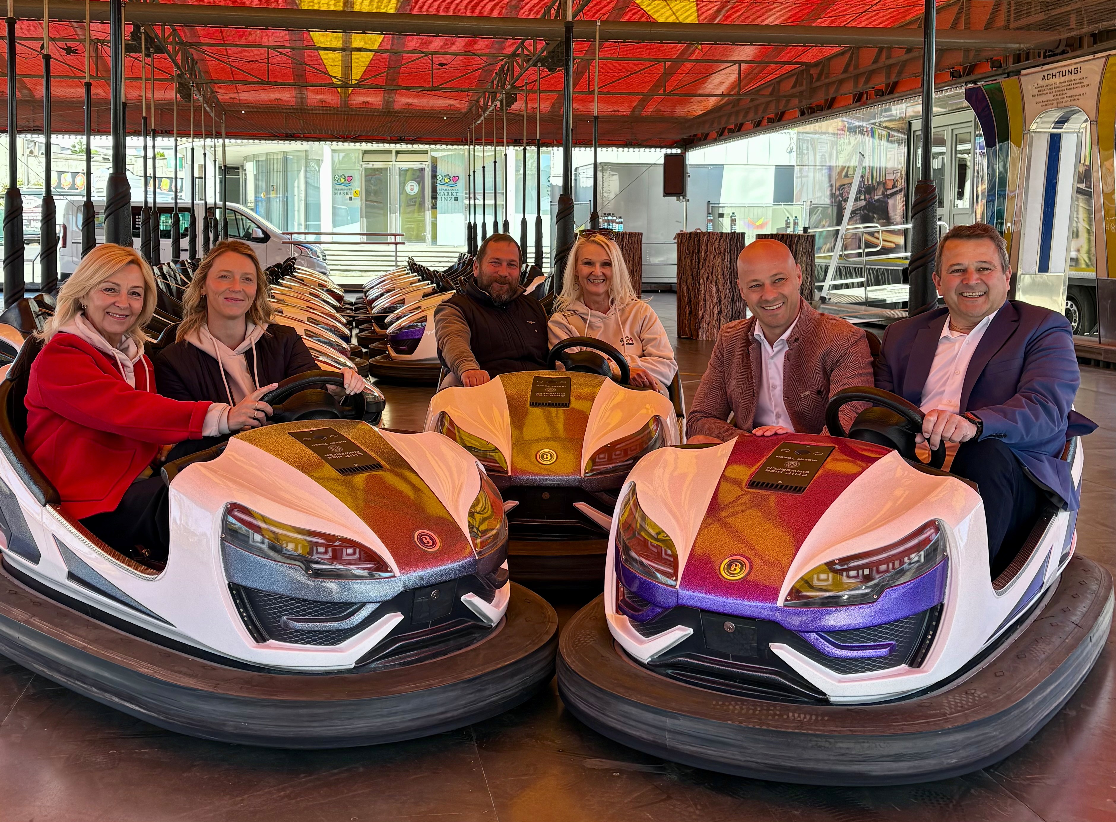 Am 30. April startet der Urfahraner Frühjahrsmarkt mit einem bunten Programm und neuen Attraktionen. Im Bild von rechts: Direktor Ing. Mag. Peter Ilchmann vom städtischen Geschäftsbereich Gebäudemanagement und Tiefbau, Marktreferent Vizebürgermeister Mag. Martin Hajart, Eva Krenn, Mitarbeiterin in der Abteilung Marktmanagement und Tourismus, Schausteller Heinrich Straßmeier, Mag.a Theresa Gillhofer, Leiterin der Abteilung Marktmanagement und Tourismus und Manuela Damm, Mitarbeiterin in der Abteilung Marktmanagement und Tourismus.