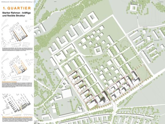 Auf Grundlage des städtebaulichen Wettbewerbs und des kooperativen Verfahrens werden gemeinsam mit den Bauträgern erforderliche Unterlagen (Flächenwidmungsplan, Bebauungsplan, Mobilitätskonzepte, Freiraumkonzepte, Strategische Umweltprüfung, Branding…) ausgearbeitet.