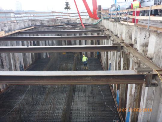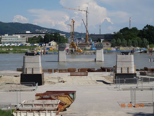 Mit der Produktion von Stahlbauteilen im Werk der MCE wurde begonnen. Es erfolgen Schalungs- und Betonarbeiten bei Widerlager Linz und beim Wasserpfeiler auf Urfahrer Seite.