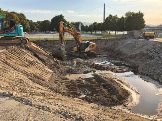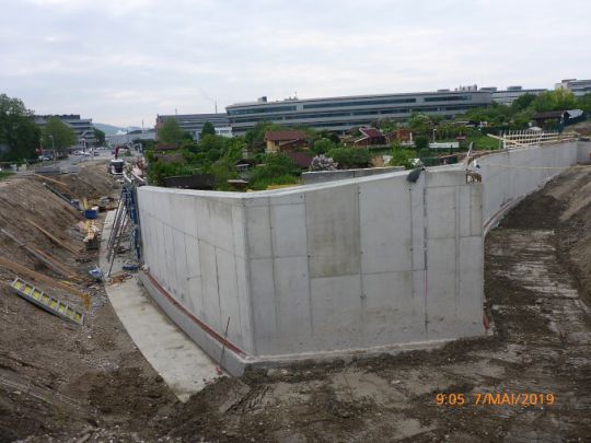 Bei der Kleingartenanlage werden zwei Stützmauern errichtet.