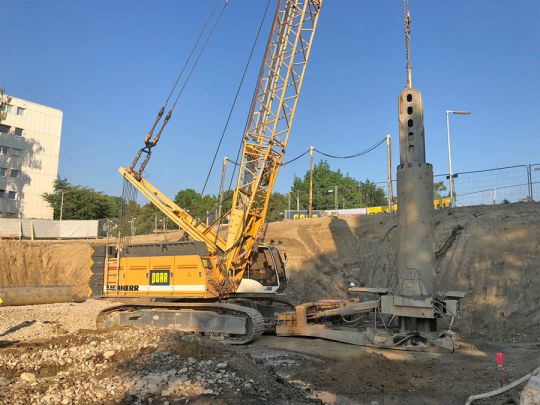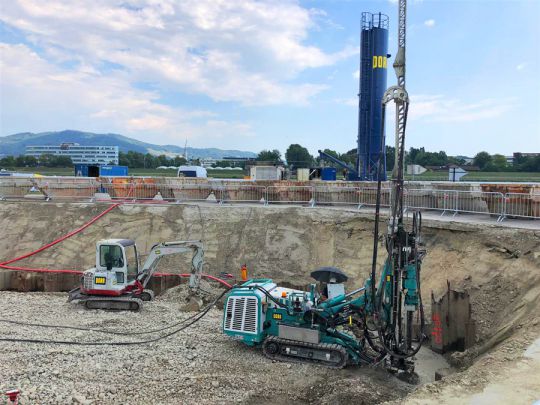 Bohrpfahlarbeiten beim Widerlager auf der Linzer Seite haben begonnen.